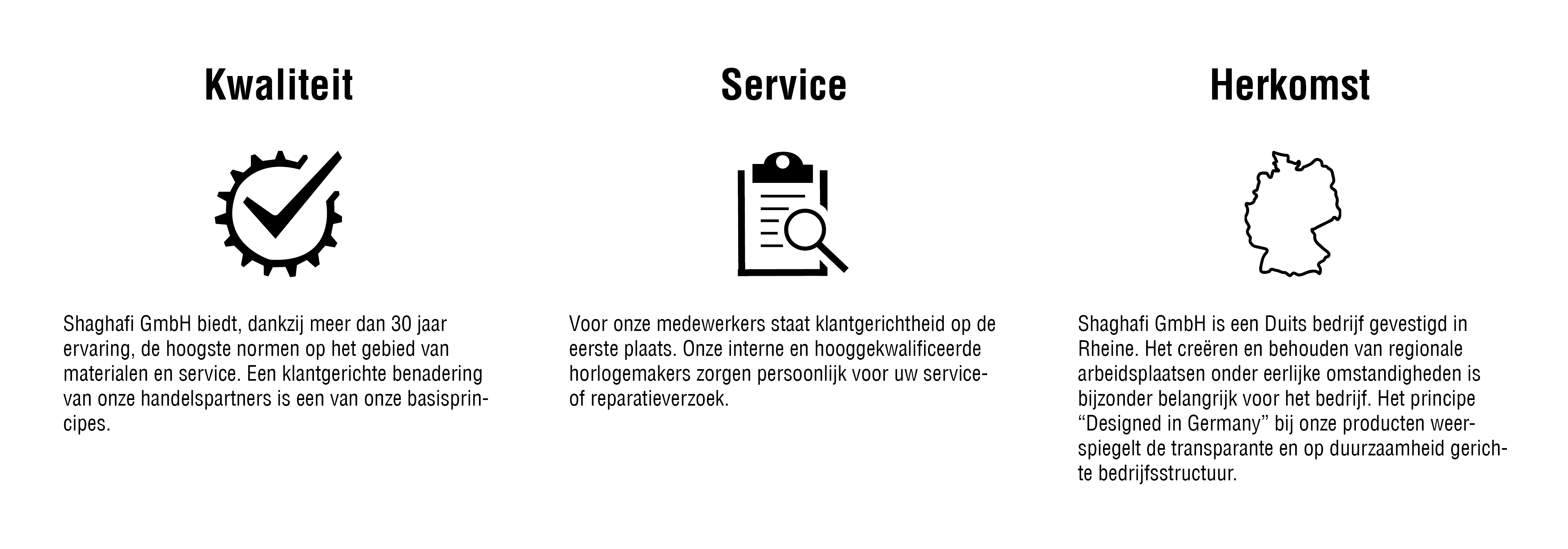 Neem de juiste beslissing voor uw bedrijf, vertrouw op de ervaring en expertise en kies voor B2B-groothandel in horloges en sieraden Shaghafi uit Rheine. Ontdek ons unieke assortiment en profiteer van onze geweldige voorwaarden, snelle levering en uitstekende service.