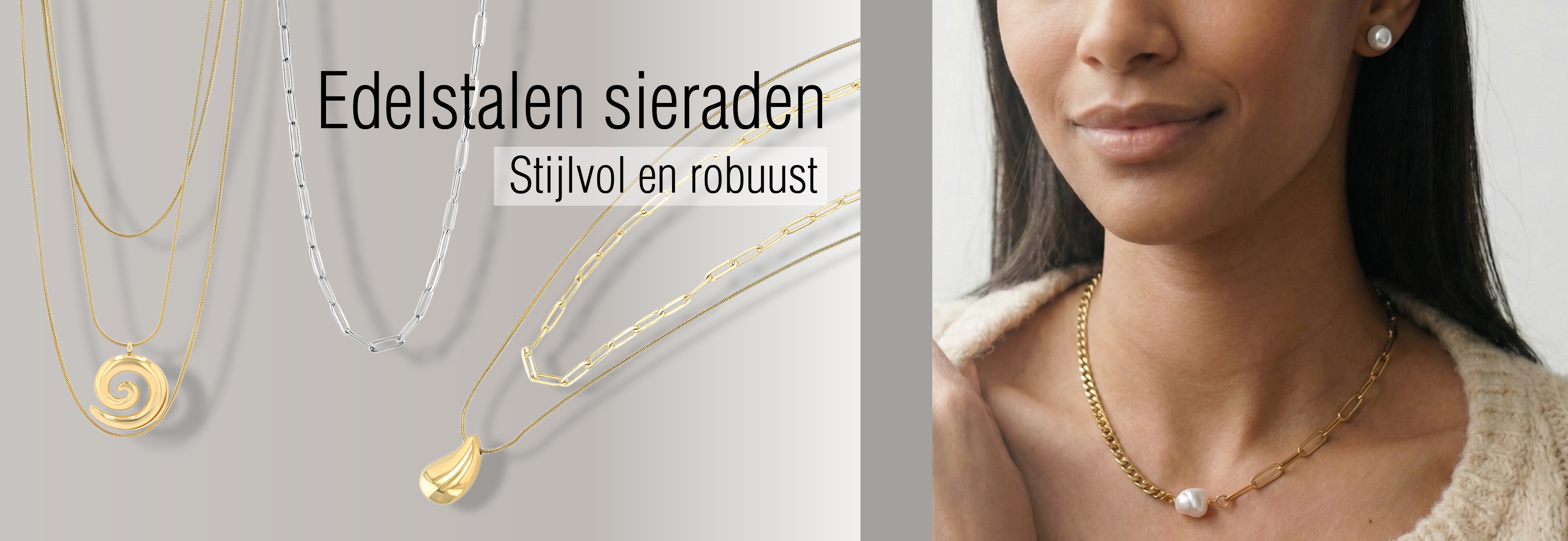 Als groothandel in sieraden bieden wij u adembenemende collecties roestvrijstalen sieraden aan. Eersteklas sieraden van roestvrij staal voor u als wederverkoper. Voeg nog meer elegantie toe aan uw assortiment met onze kettingen voor mannen en vrouwen, hangers, armbanden, ringen, oorbellen en enkelbandjes. Ontdek onze roestvrijstalen sieraden en vergroot uw succes. Wij bieden u unieke ontwerpen tegen onverslaanbare prijzen.