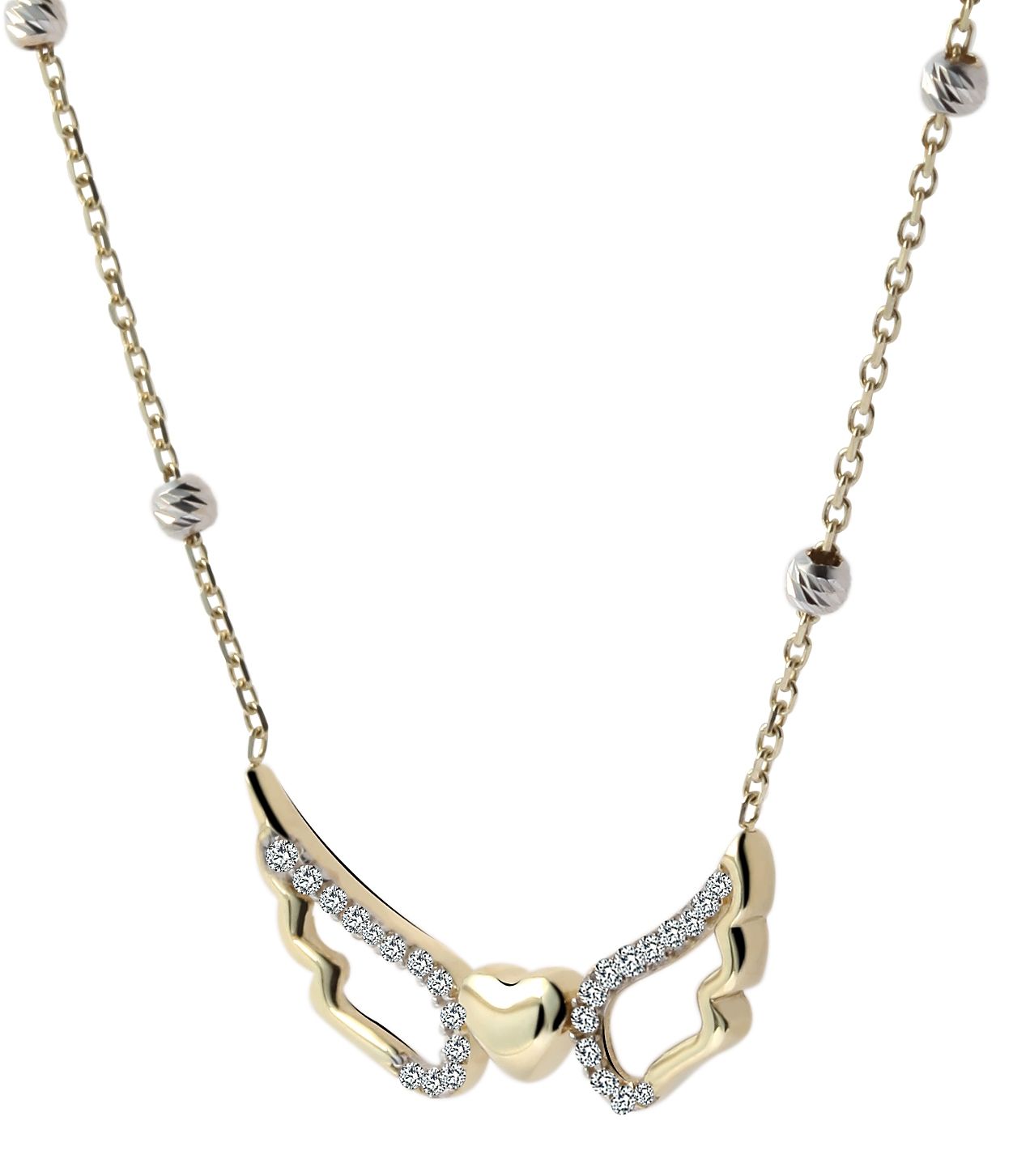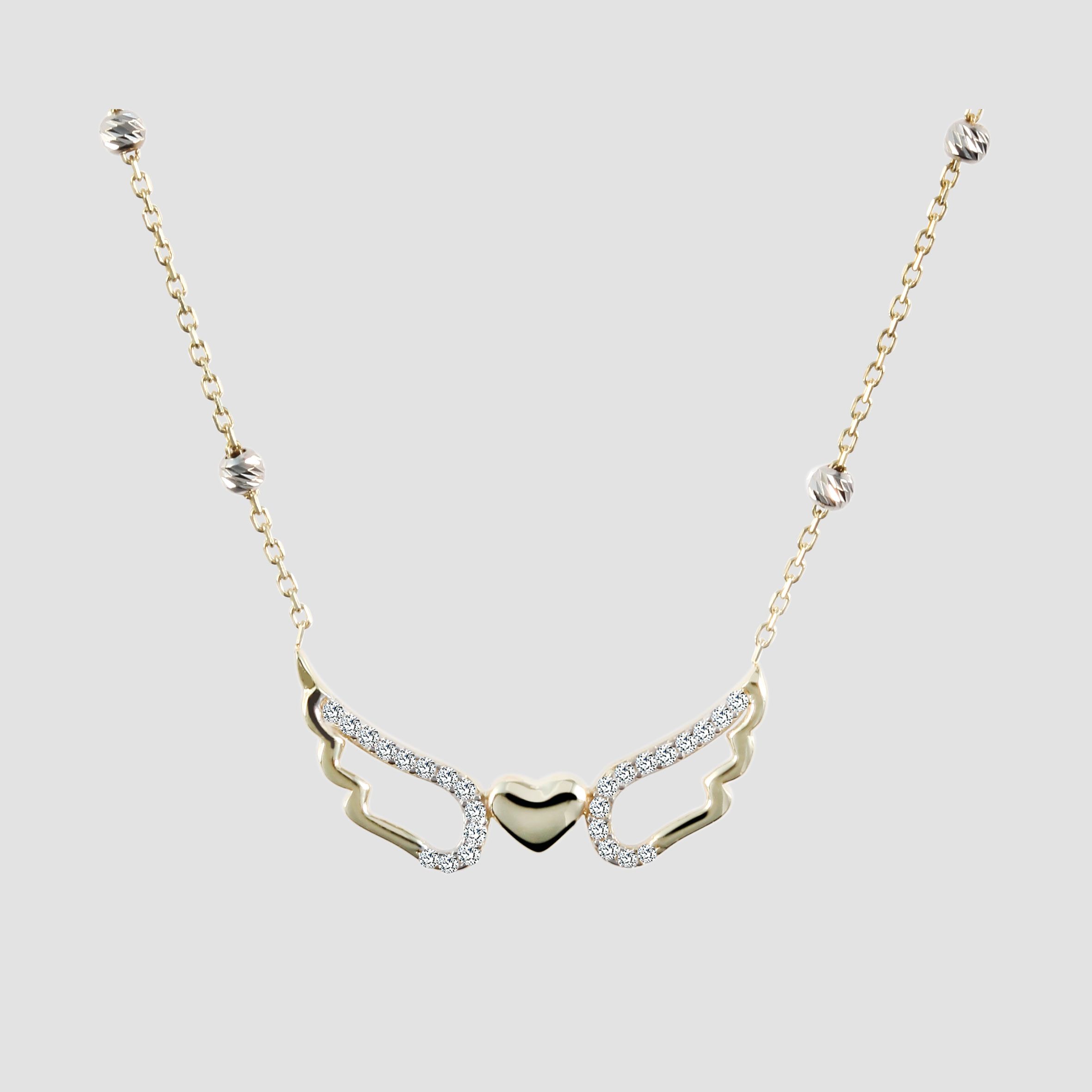 Productinformatie "333/- Gold "Amelia" Kette mit Anhänger, Herz, Flügel, Zirkoniabesatz, 8 Karat, Gelbgold"