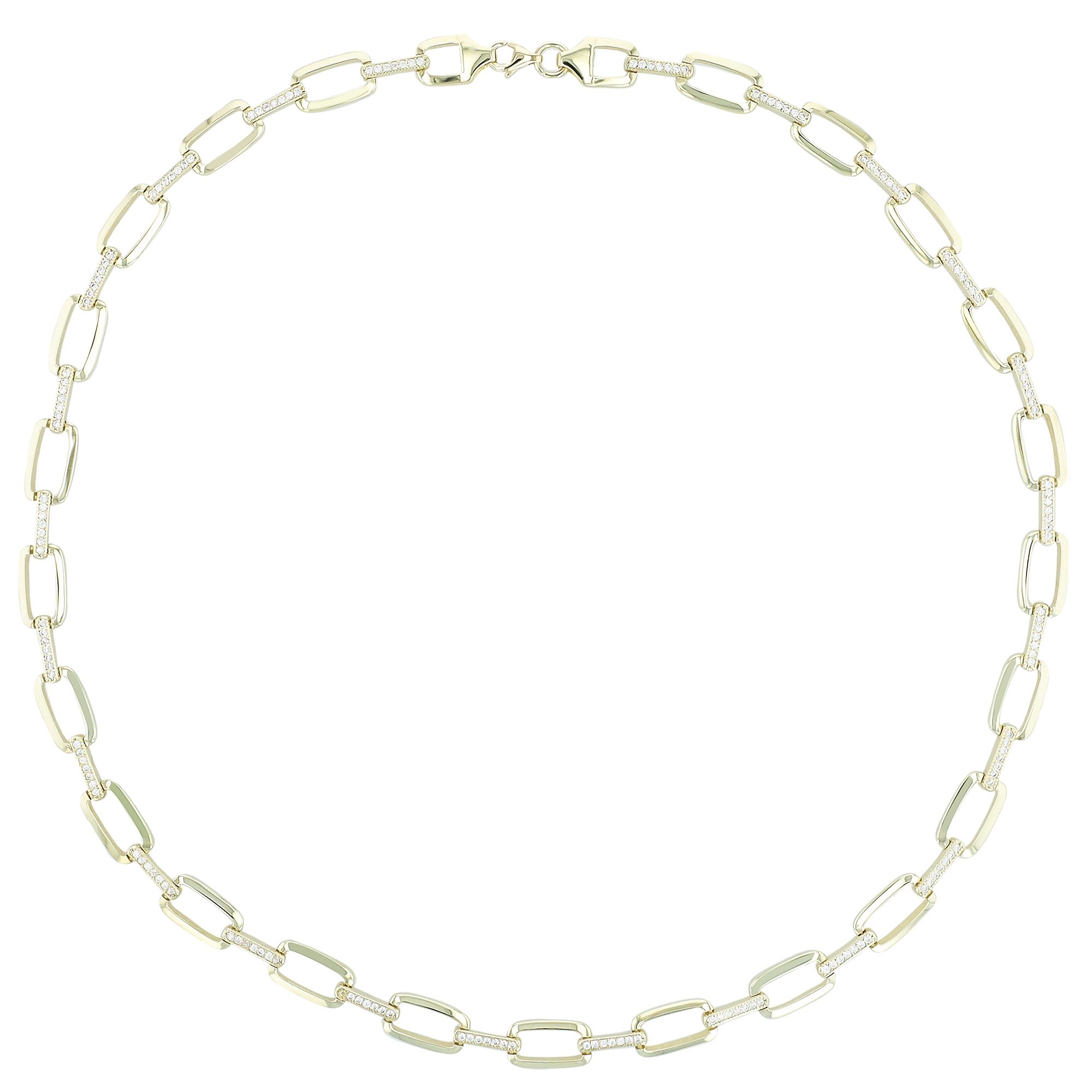 De elegante ketting is gemaakt van 333 goud. Het collier is geelgoud en heeft een gepolijste look. Het collier is bezet met 168 zirkonia stenen, die het licht op een fascinerende manier weerkaatsen. Elke individuele steen is zorgvuldig geselecteerd en nauwkeurig gezet. Dit zorgt voor een adembenemende schittering die bewonderende blikken aantrekt. Met een lengte van 45 cm, een breedte van 7 mm en een dikte van 2 mm omhelst de ketting perfect het decolleté en is hij comfortabel om te dragen. Het elegante sieraad wordt bevestigd met een karabijnsluiting, die ook gemaakt is van 333 goud.