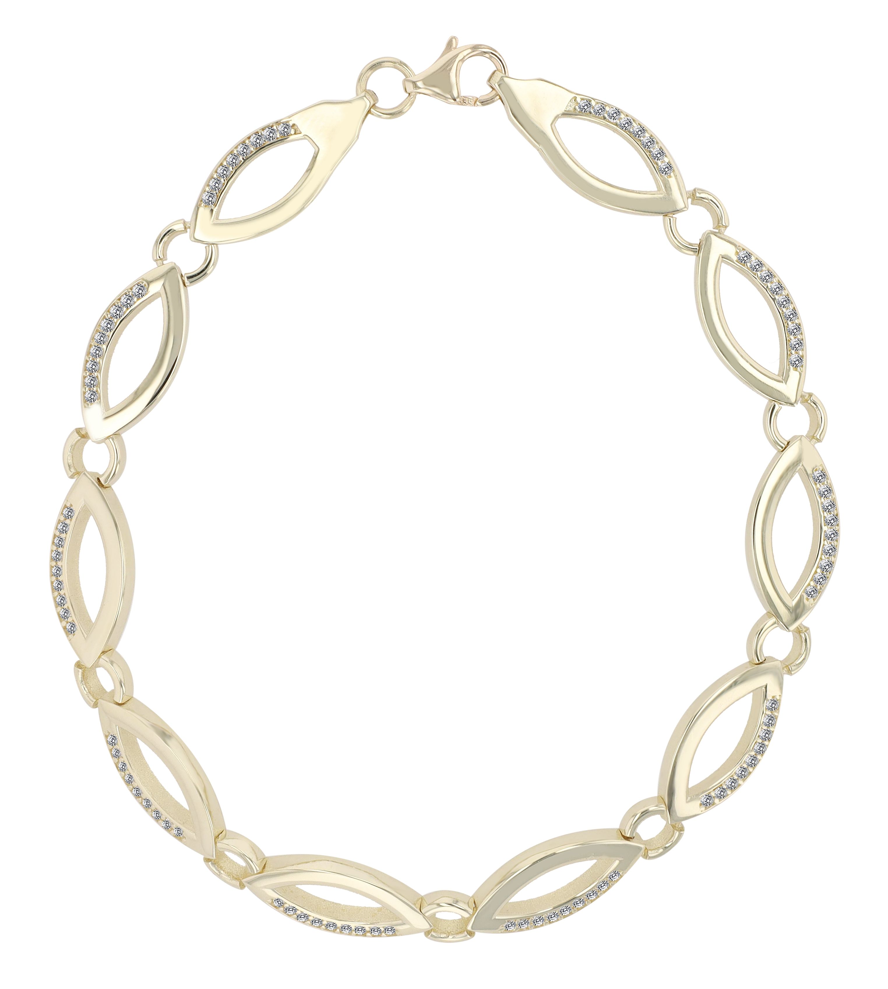 Er is aandacht besteed aan perfectie tijdens de vervaardiging van de juwelenarmband. De ovaalvormige oogjes creëren een elegant en onvergetelijk design. Ze zijn vakkundig op gelijke afstanden verbonden met ronde oogjes die een harmonieuze eenheid vormen. Elk van deze ovale elementen is zorgvuldig bezet met fonkelende zirkonia steentjes die het licht op een betoverende manier vangen en weerkaatsen.