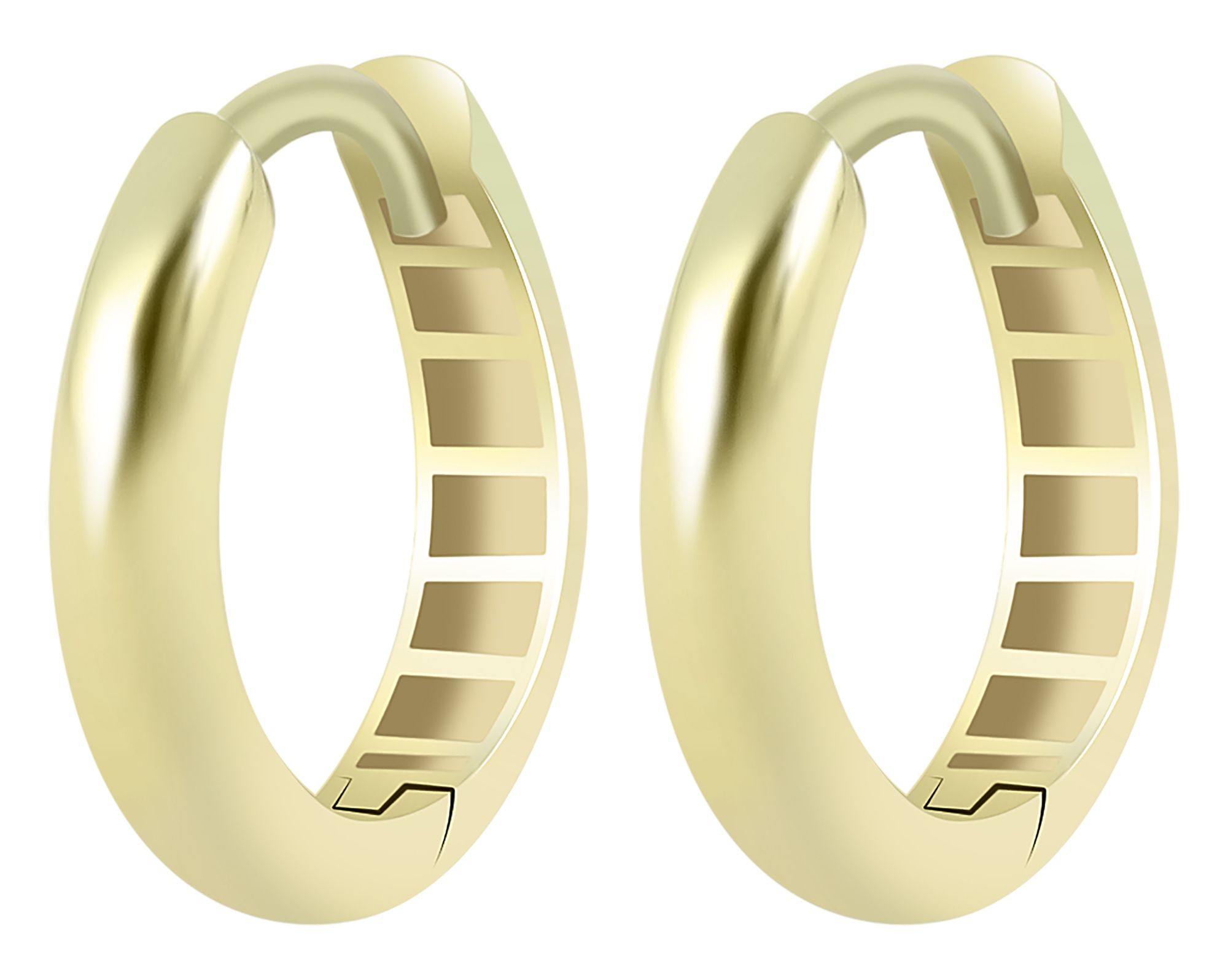 De eenvoudige scharnierende hoepeloorbellen zijn gemaakt van hoogwaardig 333/- geelgoud. Ze hebben een diameter van 11 mm, een breedte van 3 mm en een materiaaldikte van 2 mm. De hoepeloorbellen kunnen worden geopend en gesloten met behulp van een scharnierend mechanisme, waardoor ze niet uit zichzelf kunnen worden geopend. De oorbellen hebben een discreet en onopvallend ontwerp met een gepolijste afwerking. Hoepeloorbellen zijn erg populair. Met deze oorsieraden heb je een stijlvolle metgezel met een zelfbewuste uitstraling waar je lang plezier van zult hebben.