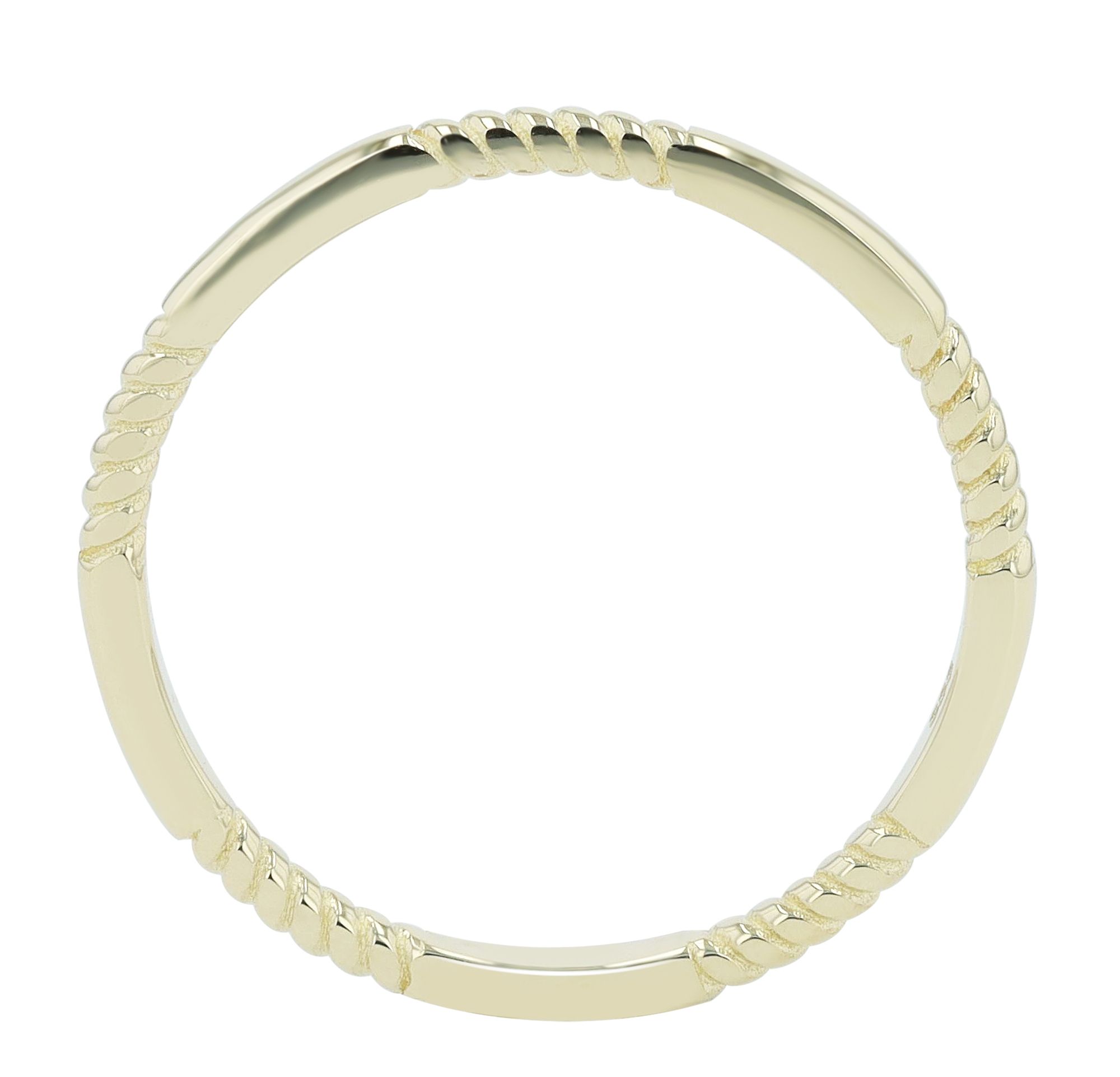 Deze discrete damesring van 333 goud maakt indruk met zijn subtiele verfijning. Het unieke ontwerp combineert gladde en gedraaide delen om een speciale uitstraling te creëren. Het gepolijste oppervlak benadrukt de warme goudtint en geeft het een onweerstaanbare glans. De delicate ring is 1,5 mm breed en heeft een dikte van 1,5 mm. Hij is verkrijgbaar in de maten 50 tot 60 en past perfect om bijna elke vinger. De damesring is meer dan alleen een accessoire. Het is een uitdrukking van tijdloze schoonheid en elegantie. Dit sieraad kan met elke outfit gecombineerd worden en is een stijlvolle metgezel in het dagelijks leven en bij elke feestelijke gelegenheid.