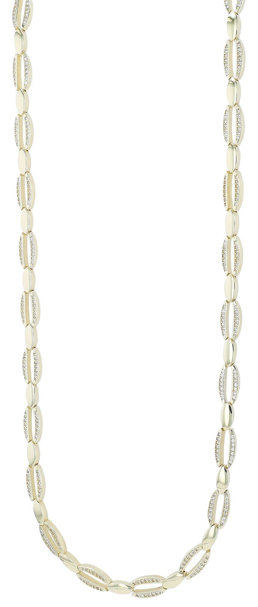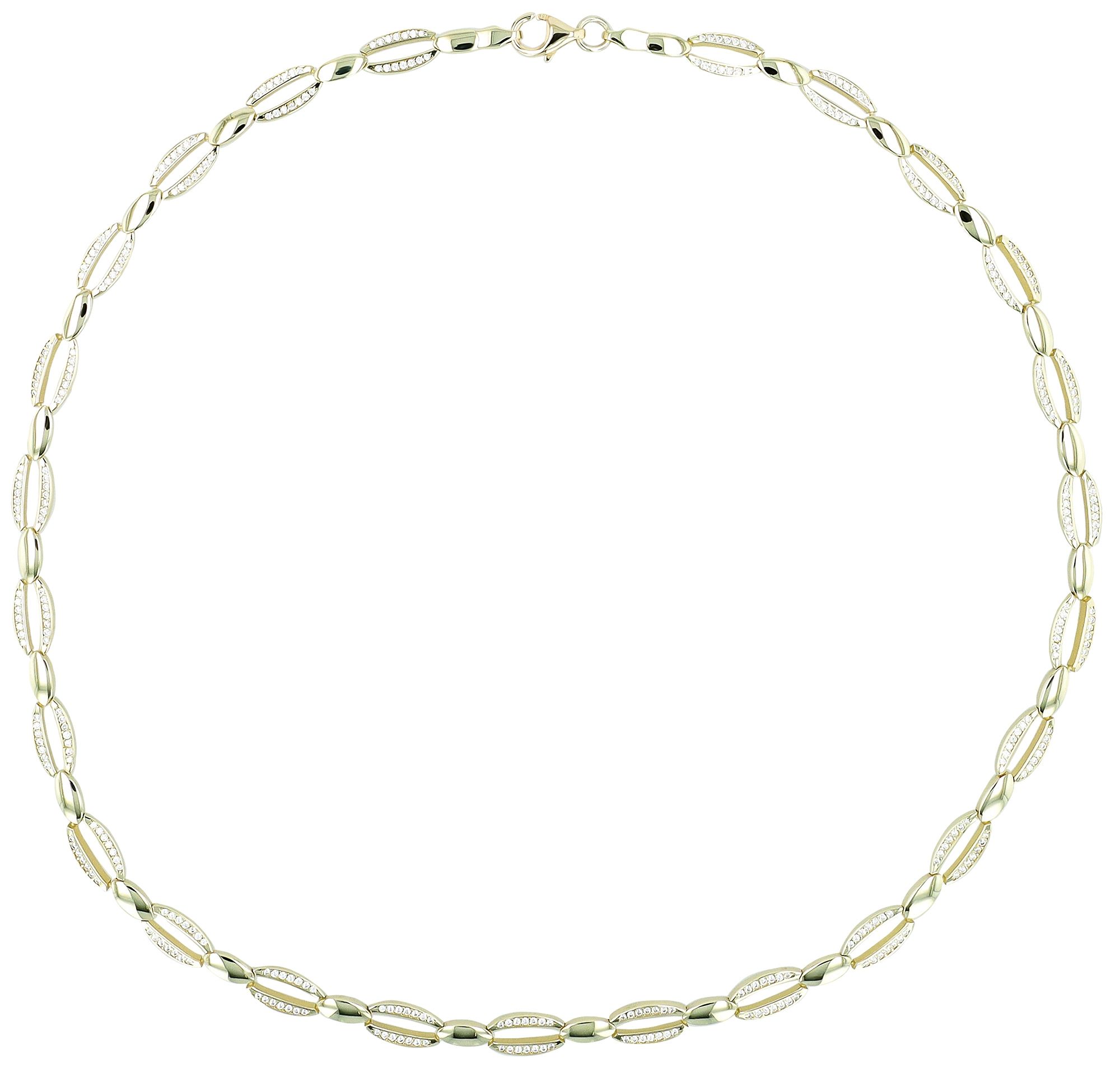 Dit prachtige collier is gemaakt van 333 goud. Het gepolijste oppervlak en de zirkonia stenen geven het sieraad een bijzondere glans. Het collier is bezet met 350 zirkonia steentjes, die bij elke beweging het licht prachtig weerkaatsen. Dankzij het tijdloze en elegante ontwerp kan de ketting perfect worden gecombineerd met andere sieraden. Hierdoor is het een stijlvolle metgezel voor elke gelegenheid. De ketting heeft een lengte van 45 cm, een breedte van 6 mm en een dikte van 2 mm. Met deze afmetingen omhelst de ketting perfect het decolleté en is hij comfortabel om te dragen. De ketting is eenvoudig te sluiten met een karabijnsluiting. Dit zorgt voor een stevige grip.