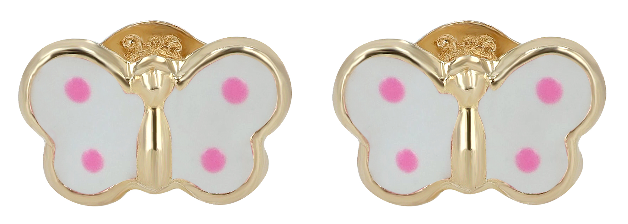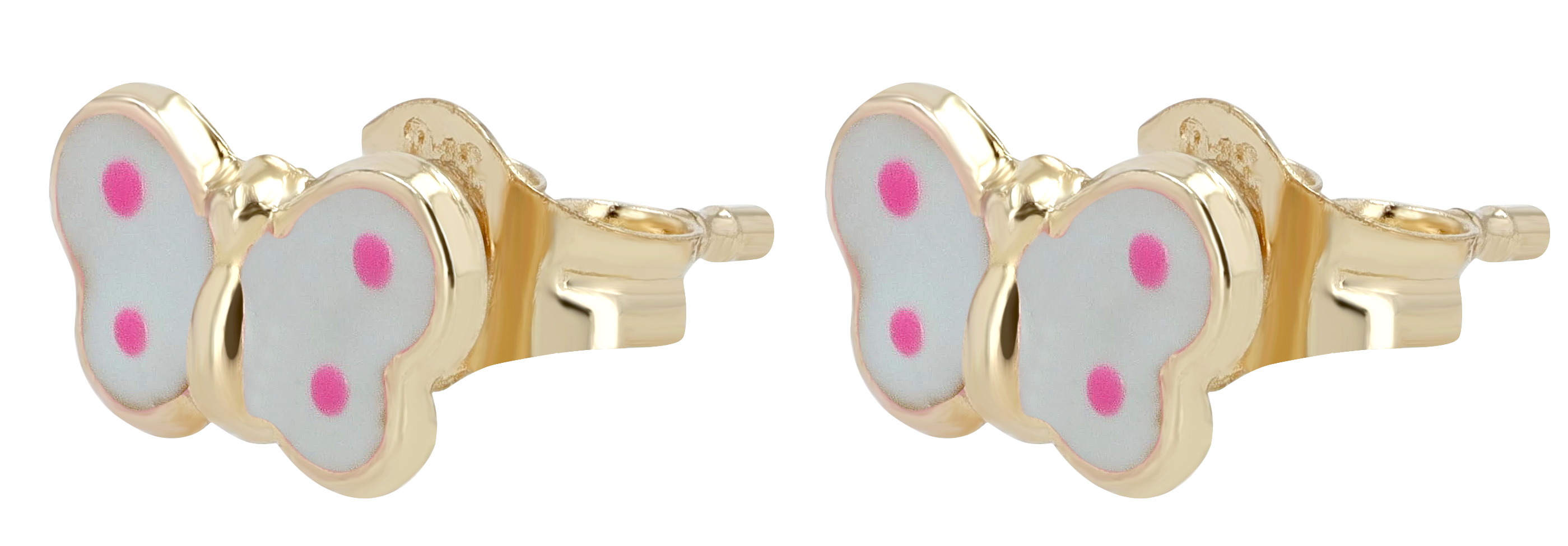 Productinformatie "333/- Gold "Yara" Ohrstecker Schmetterling, Gelbgold, 8 Karat, Kinder, Gold mit weiß/ pink"