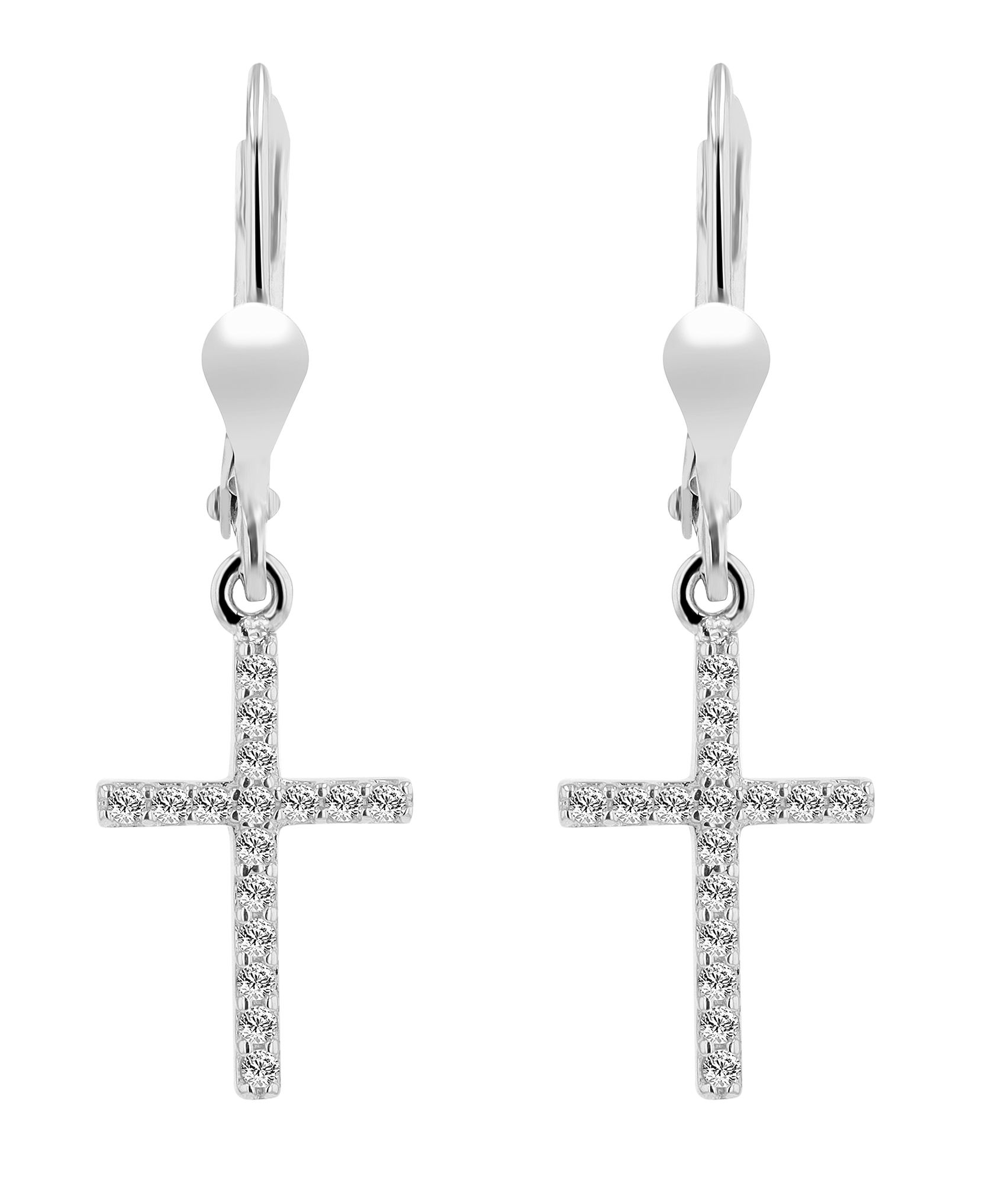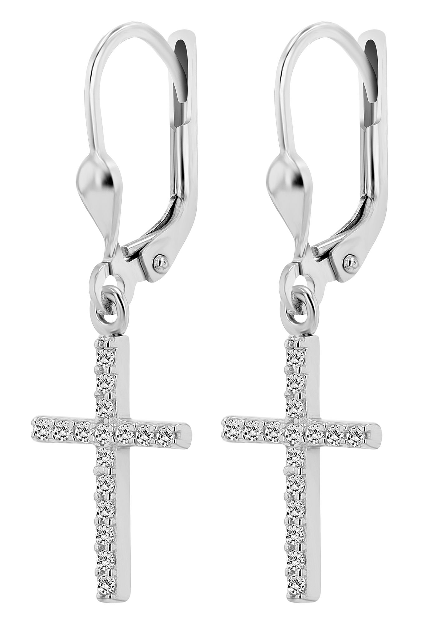 Productinformatie "333/- gouden "Layana" oorbellen kruis met zirkonia, witgoud, 8 karaat"