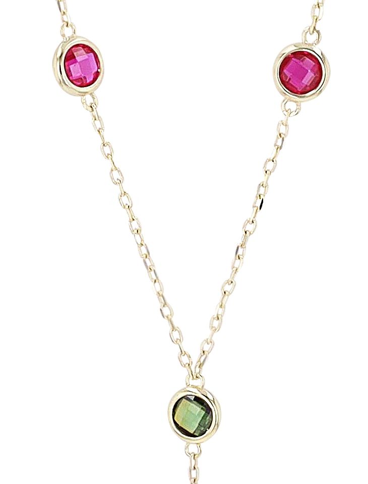 Dit bijzondere collier in 333 geelgoud is een echte blikvanger met een bijzonder oog voor detail. Gemaakt van hoogwaardig 8-karaats goud straalt het een onweerstaanbare allure uit. Het hoogtepunt zijn de zes verschillend gekleurde zirkonia stenen die de ketting sieren. Elke steen heeft zijn eigen karakter en geeft de gouden ketting een levendig kleurenspel dat de aandacht trekt.