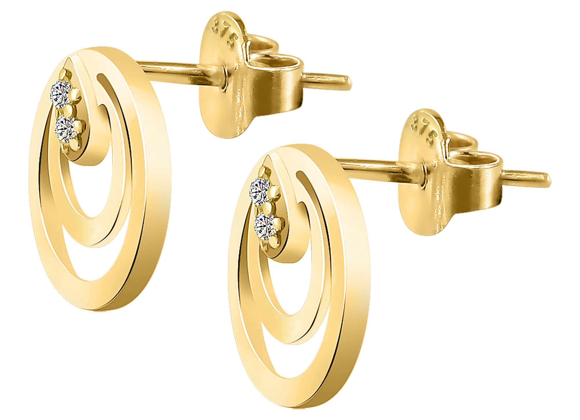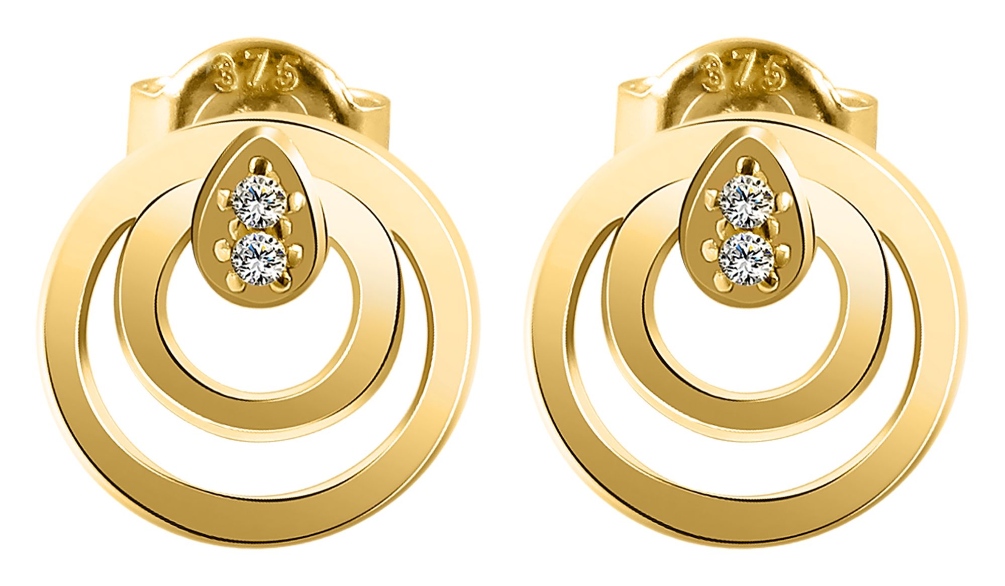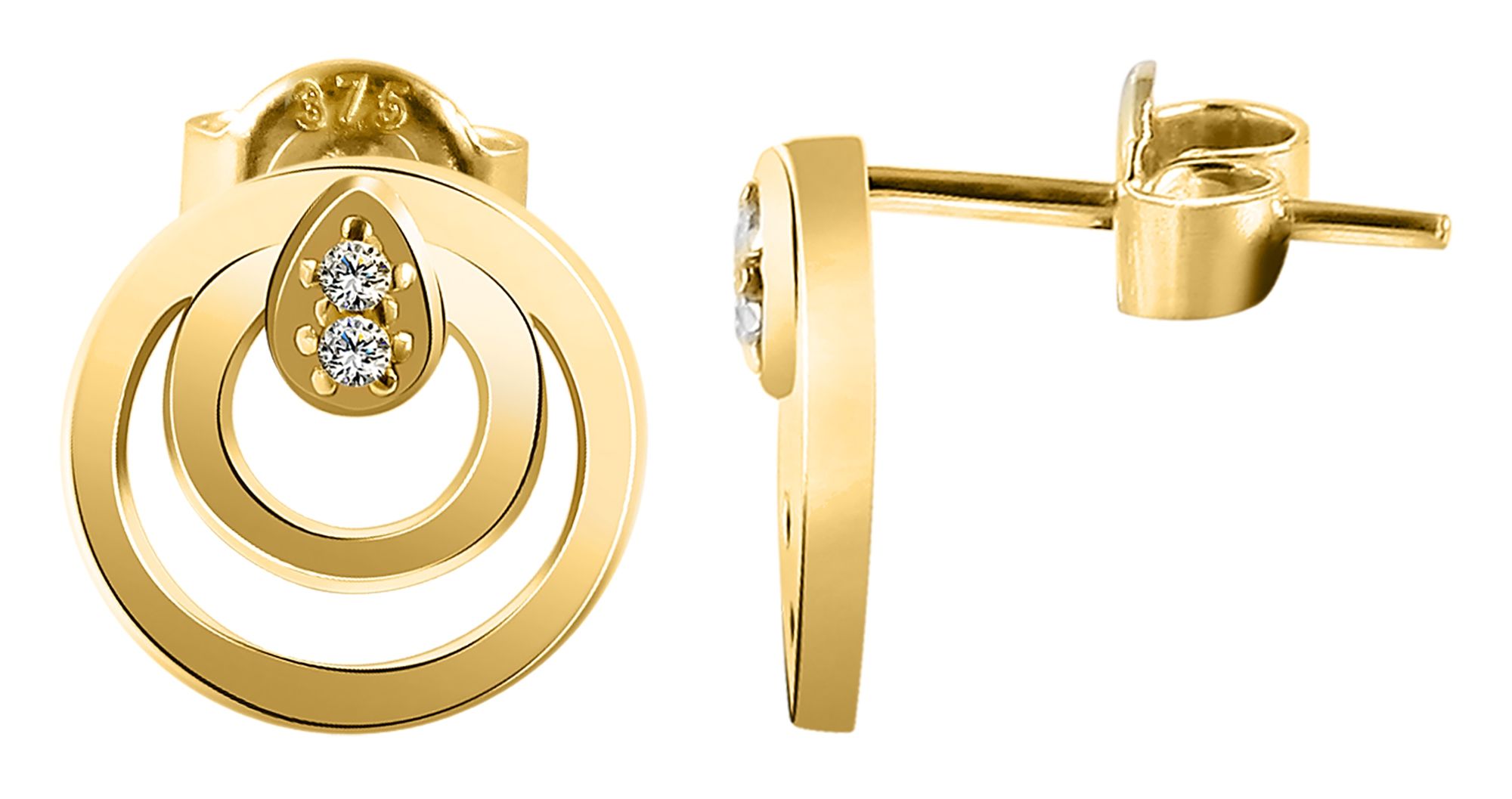 Productinformatie "375/- Gold "Antonica" Ohrstecker mit Zirkoniabesatz, rund, 9 Karat, Gelbgold"