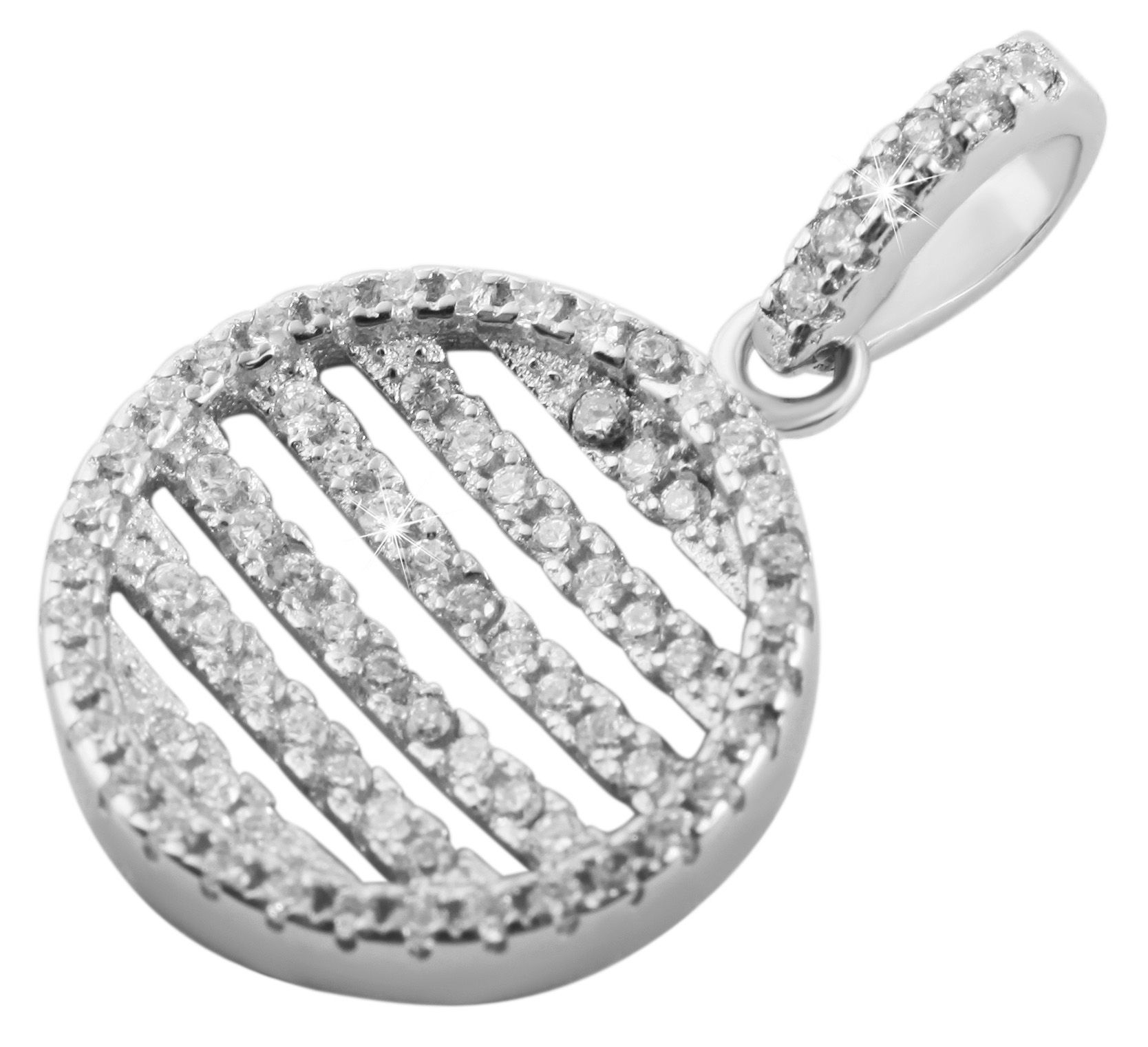 De ronde hanger is gemaakt van 925 Sterling zilver en is bovendien afgewerkt met een hoogwaardige rhodiumlaag. Deze laag beschermt het materiaal tegen aantasting en zorgt voor een geweldige glans. De hanger is volledig bezet met zirkonia steentjes. Er zitten 7 fonkelende steentjes op het oogje, de rand is bezet met 33 zirkonia steentjes en er lopen nog eens 38 glanzende steentjes in horizontale lijnen. De hanger staat voor pure elegantie en is een echte blikvanger. De afmetingen komen voort uit een diameter van 14 mm en een dikte van 3 mm. Dit sieraad is de perfecte allrounder om elke dag te dragen en is ideaal als cadeau.