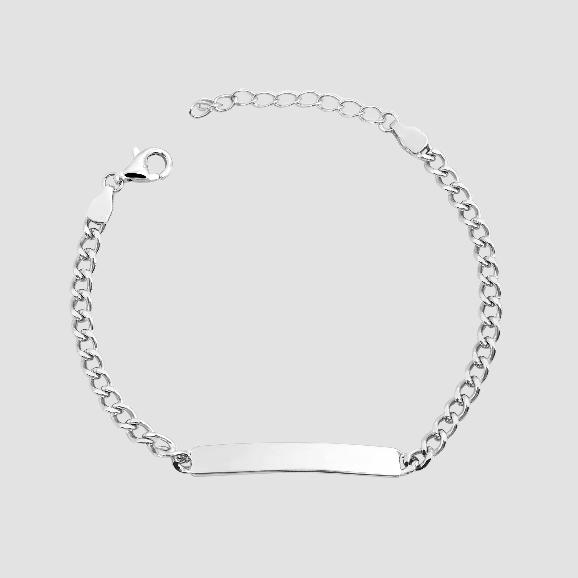 De armband met geïntegreerd graveerplaatje is gemaakt van 925 Sterling zilver en is ook gerhodineerd. Dit beschermt het materiaal tegen aantasting en geeft het een heldere, stralende glans. Het 32 mm lange en 4 mm brede graveerplaatje kan individueel gegraveerd worden met elk gewenst type gravure, zodat het sieraad een heel persoonlijk accessoire kan worden. De armband kan aan de pols worden bevestigd met een karabijnsluiting en is verkrijgbaar in verschillende lengtes.