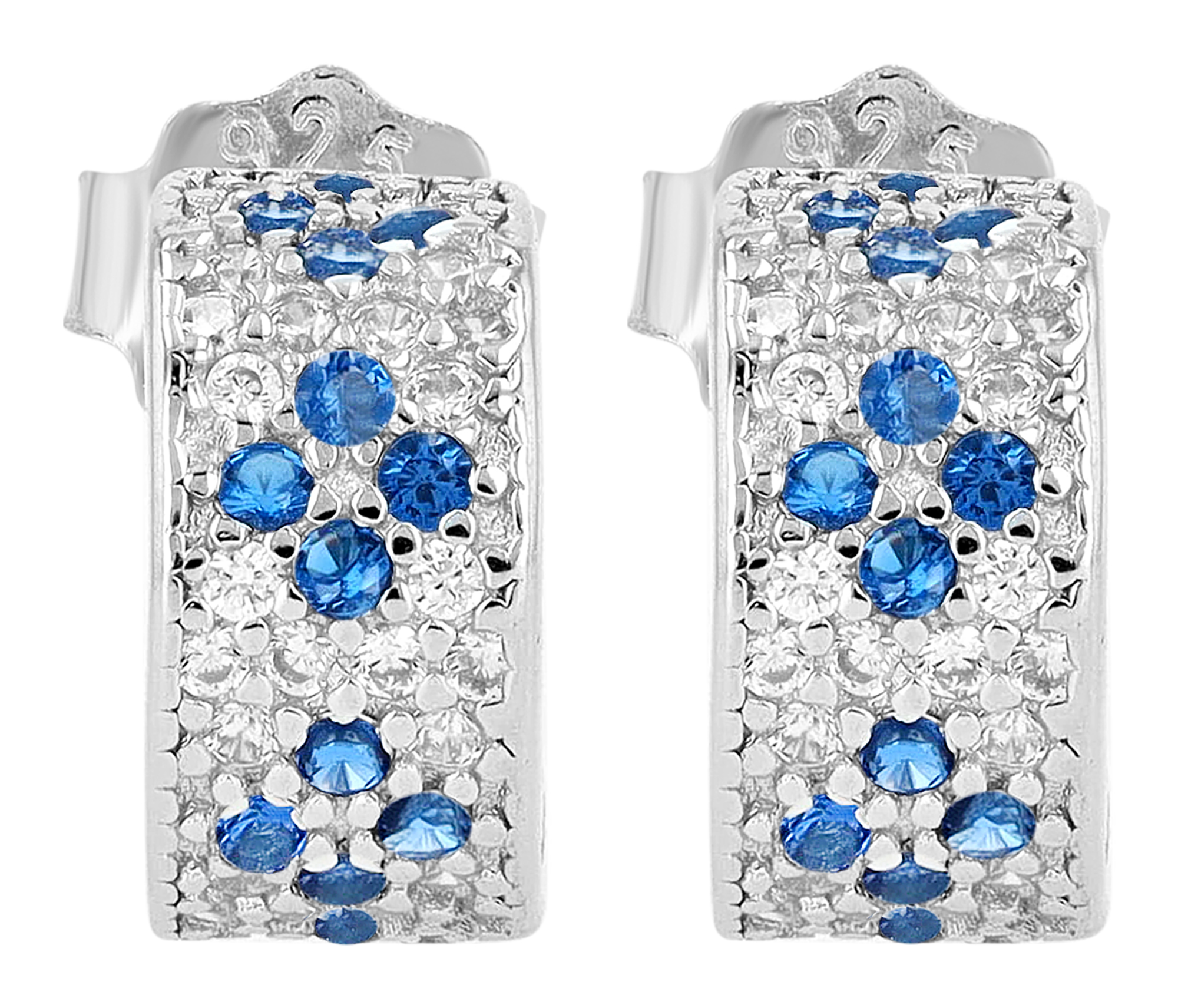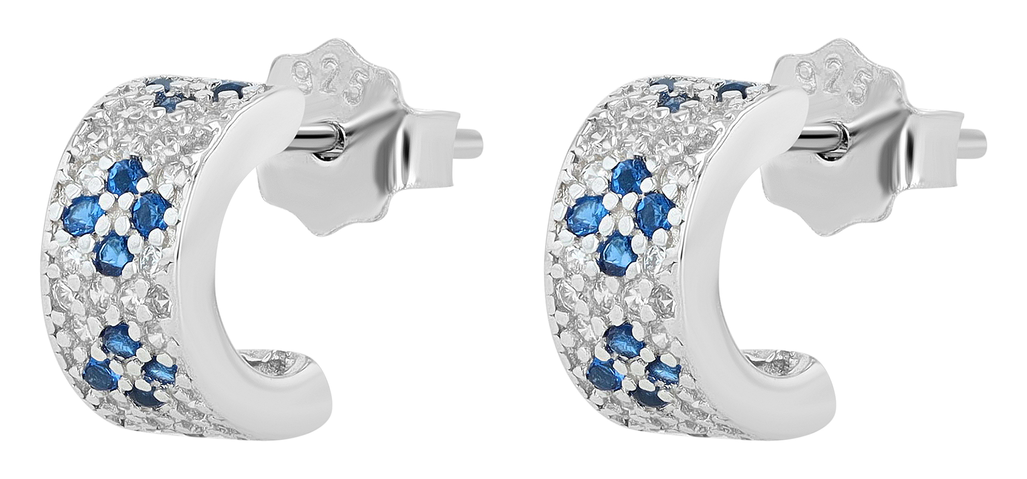Productinformatie "925/- Echt Silber Creole mit Steckverschluss,, Zirkonia blau, silberfarben rhodiniert"