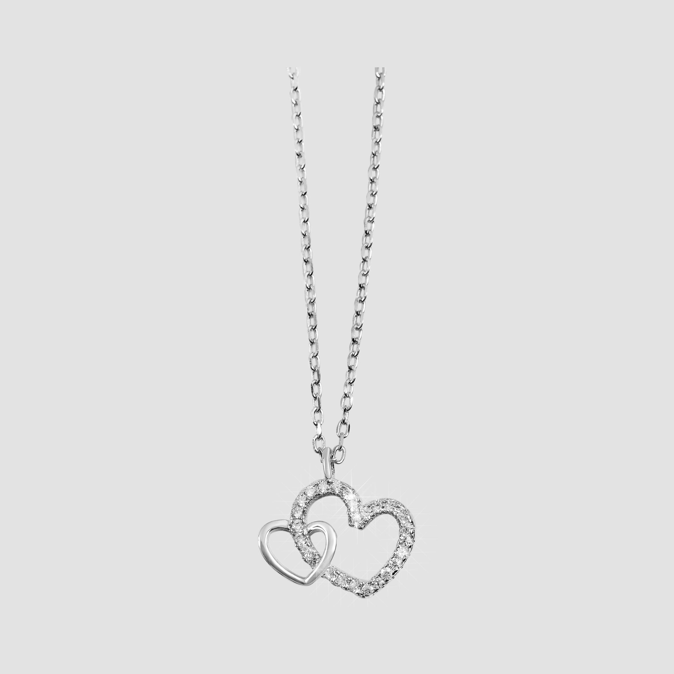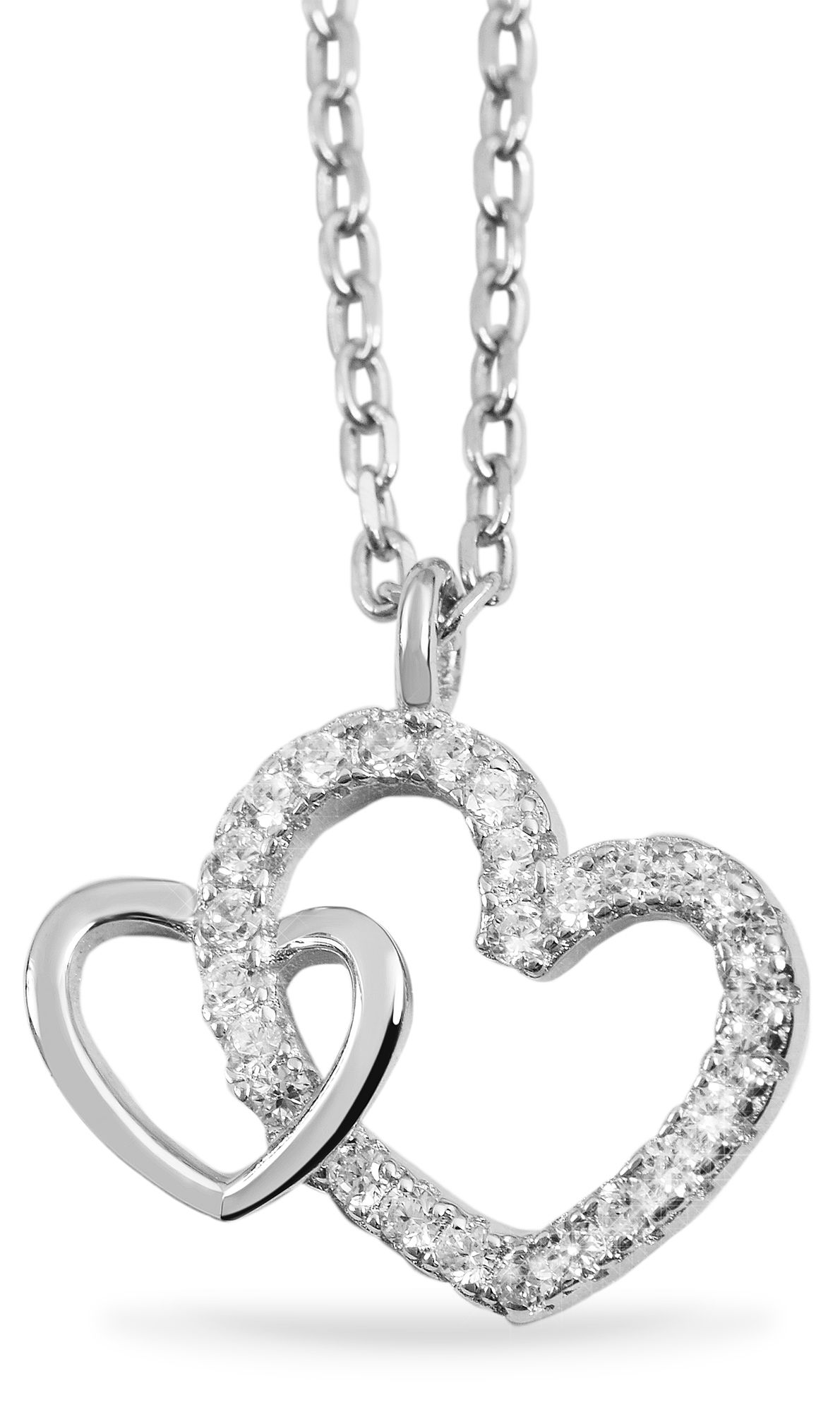Productinformatie "925/- Echt Silber Halskette mit Anhänger "Mona", Herz mit Zirkoniabesatz, 42+3cm, rhodiniert"