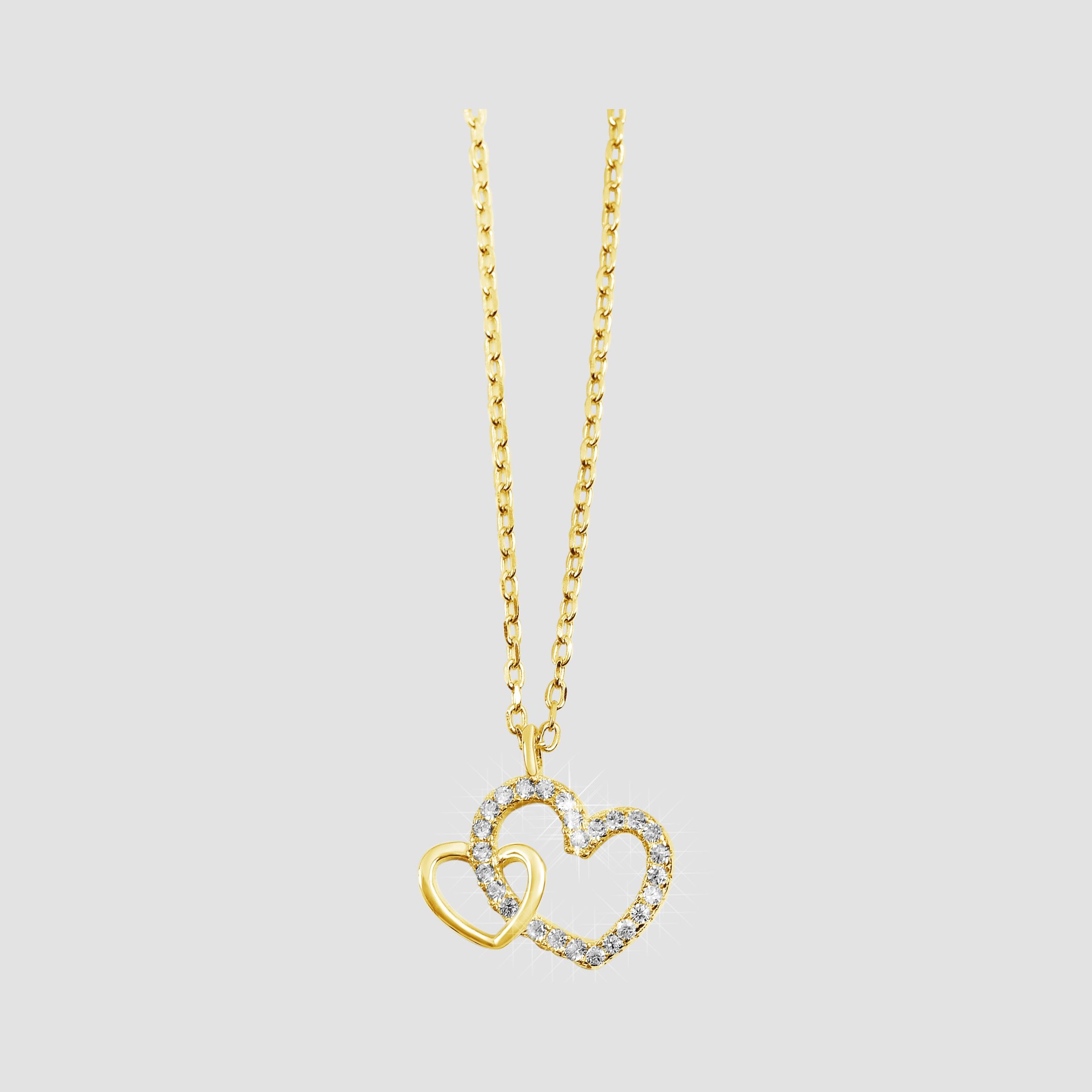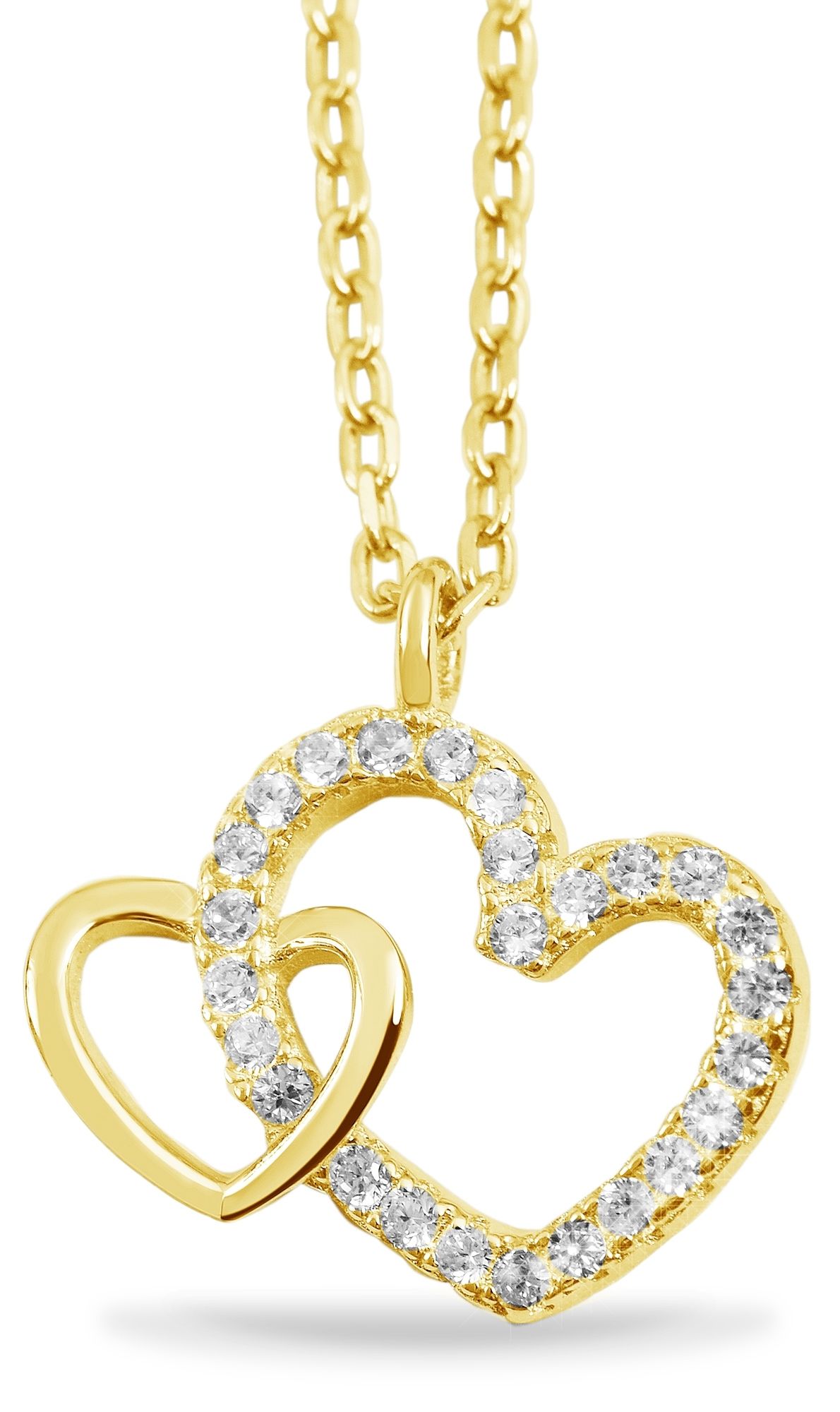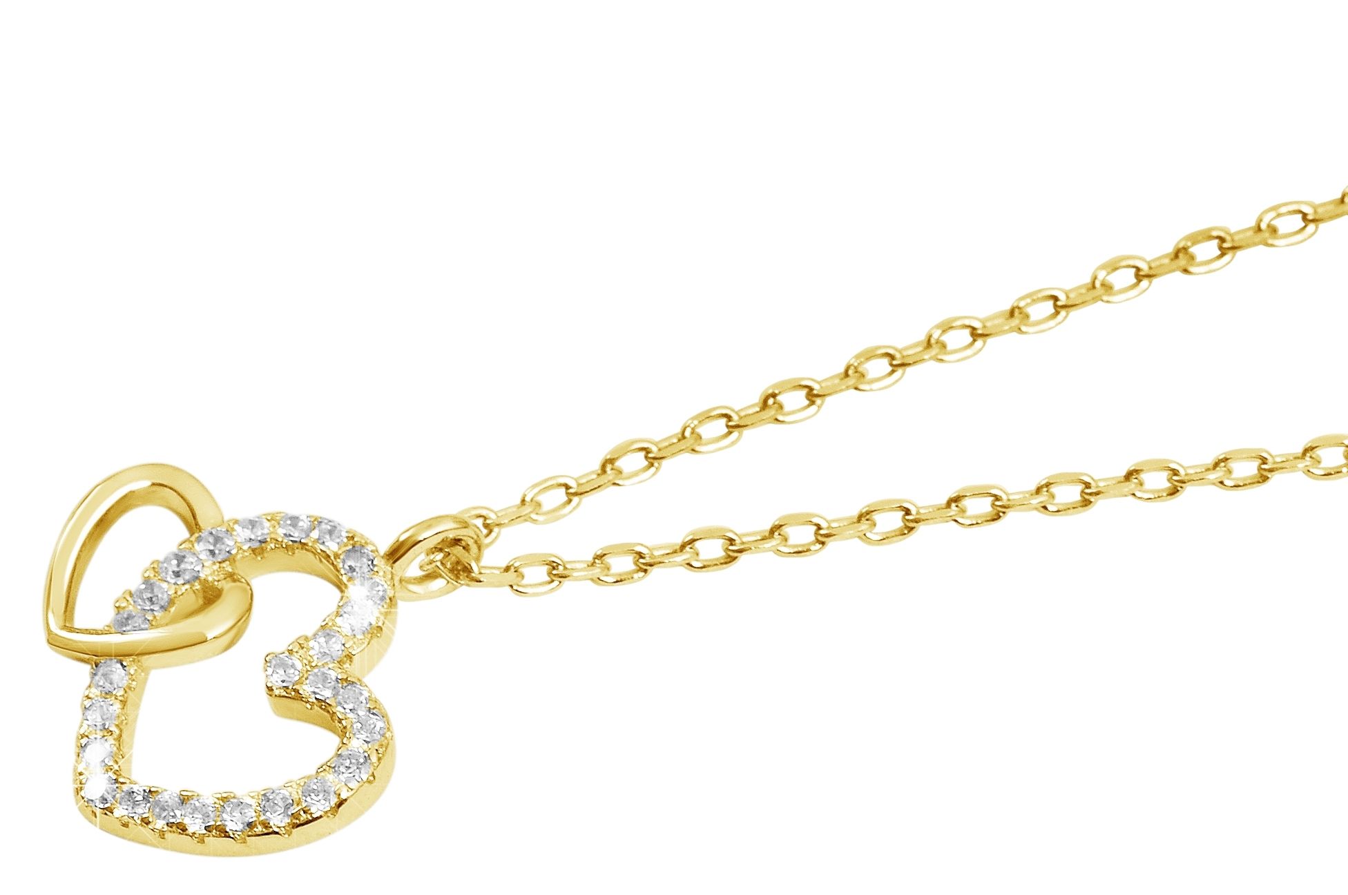 Productinformatie "925/- Echt Silber Halskette mit Anhänger "Mona", Herz mit Zirkoniabesatz, 42+3cm, vergoldet"