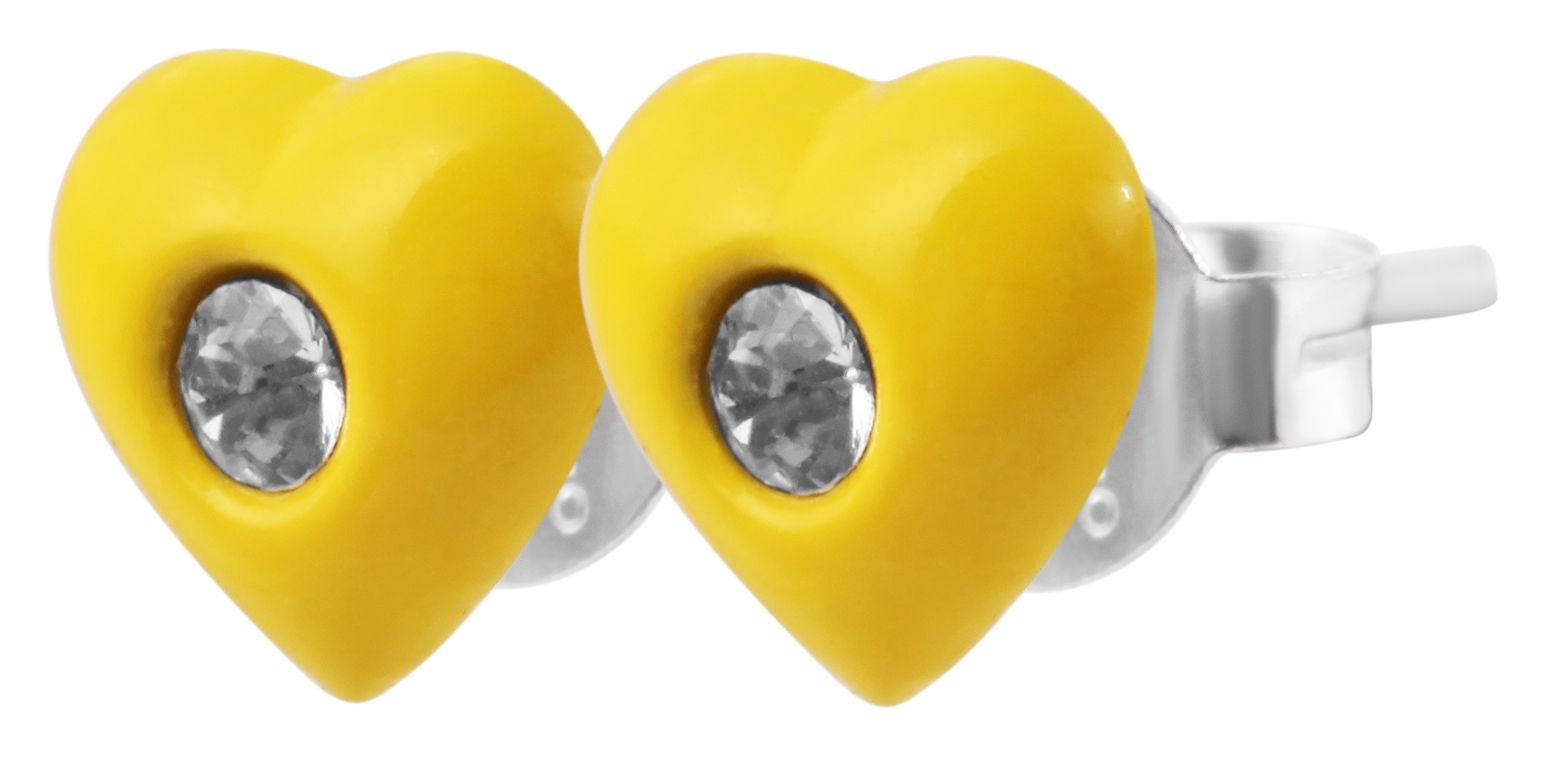Productinformatie "925/- Echt Silber Kinder Ohrstecker "Amanda", Herz mit Similistein, gelb"