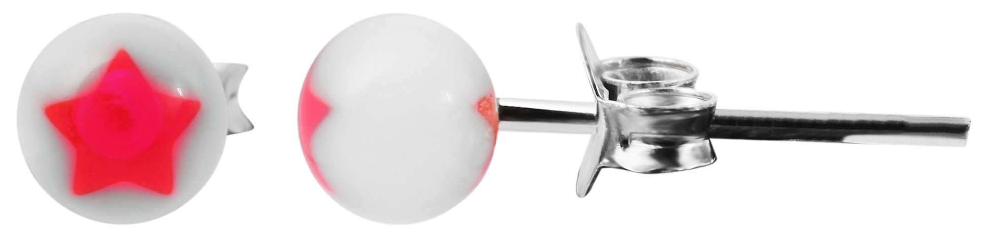 Deze schattige kinderoorstekers in de vorm van een kleine kunststof kraal zijn gemaakt van 925 Sterling zilver. Op de kraal is een kleine ster te zien, die het tafereel kunstig neerzet. De oorstekers kunnen worden gesloten met een vleugelschroef van echt zilver, die voorkomt dat de oorstekers eruit vallen. De oorbellen hebben een diameter van 5 mm en zijn 5 mm dik. Dit geweldige oorsieraad zal juwelenliefhebbers de ogen doen openen en is ideaal als cadeau om een glimlach op het gezicht van de kleintjes te toveren.