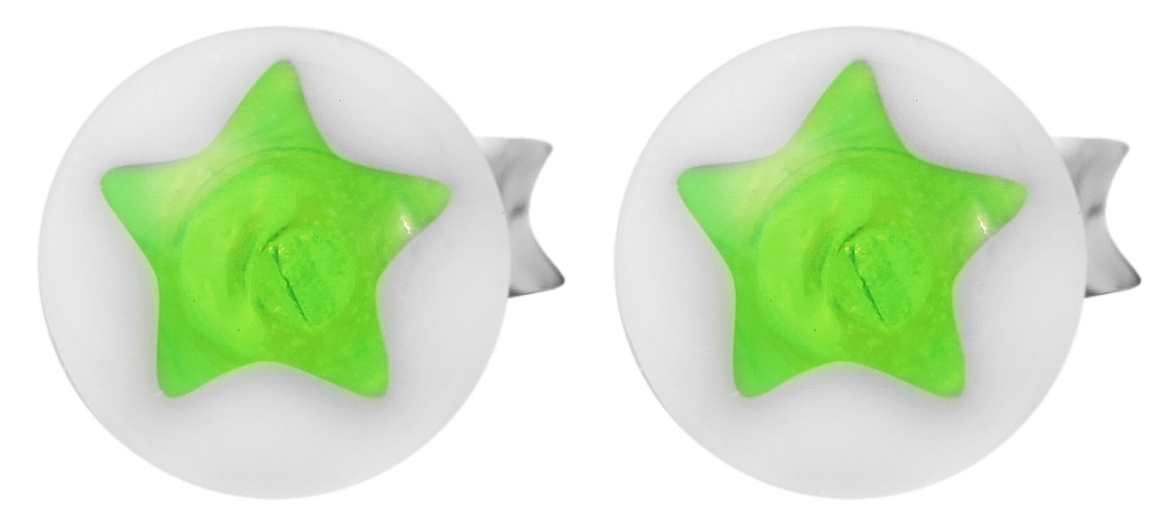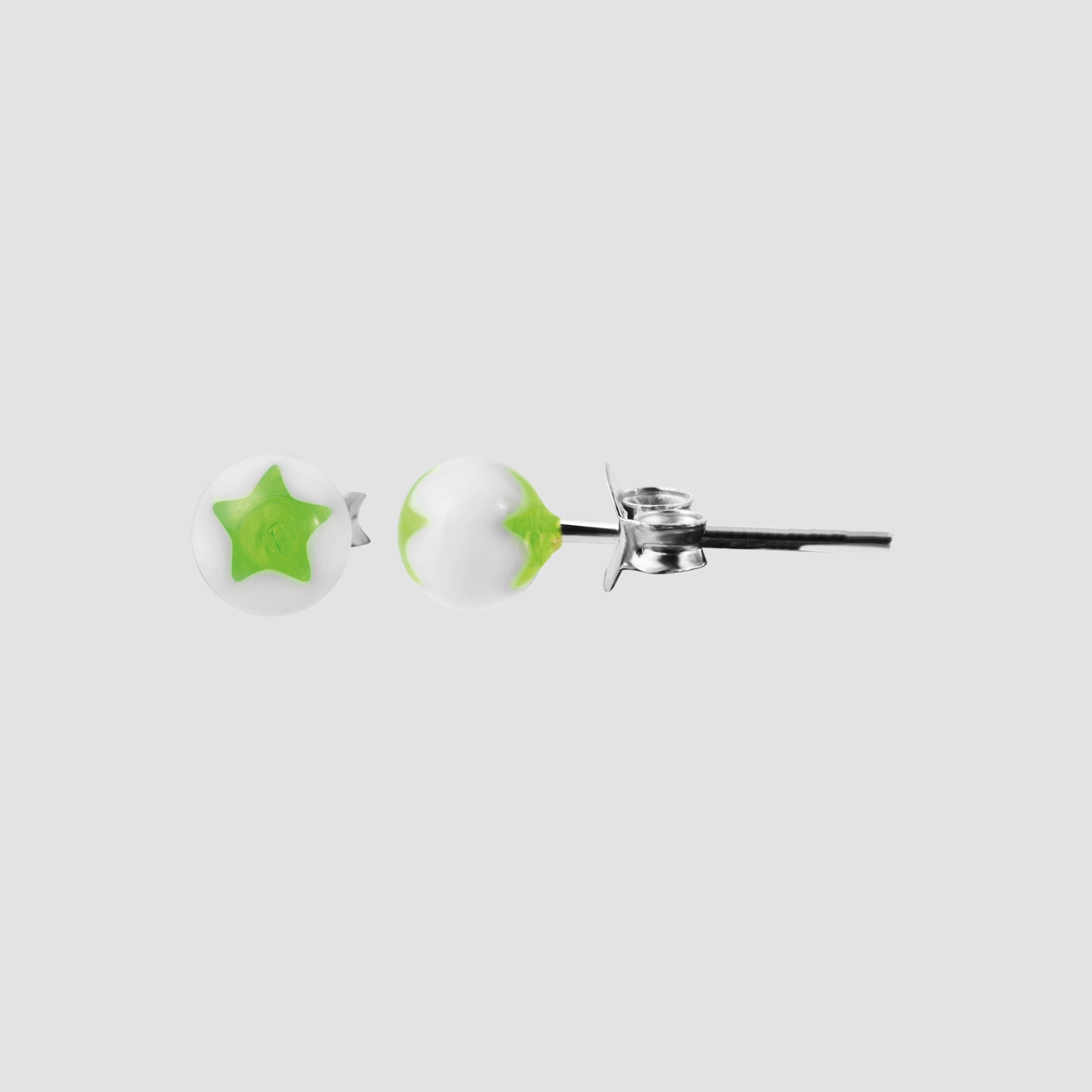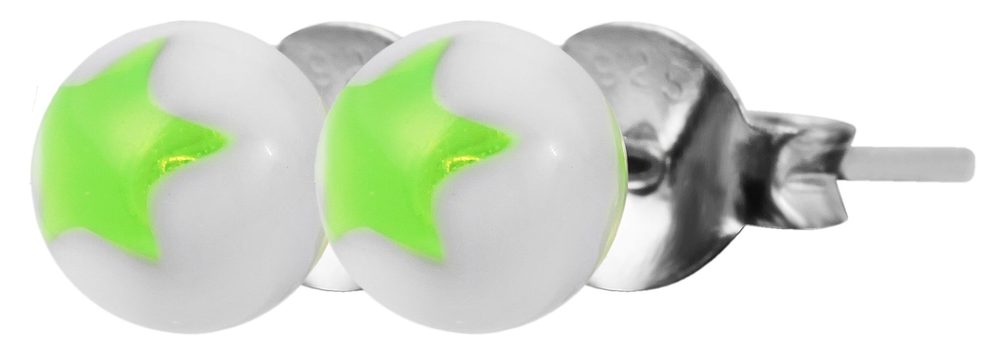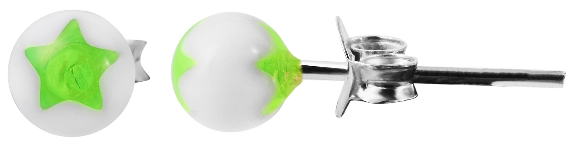 Productinformatie "925/- Echt Silber Kinder Ohrstecker "Astrid", Perle mit Stern, weiß/neongrün"