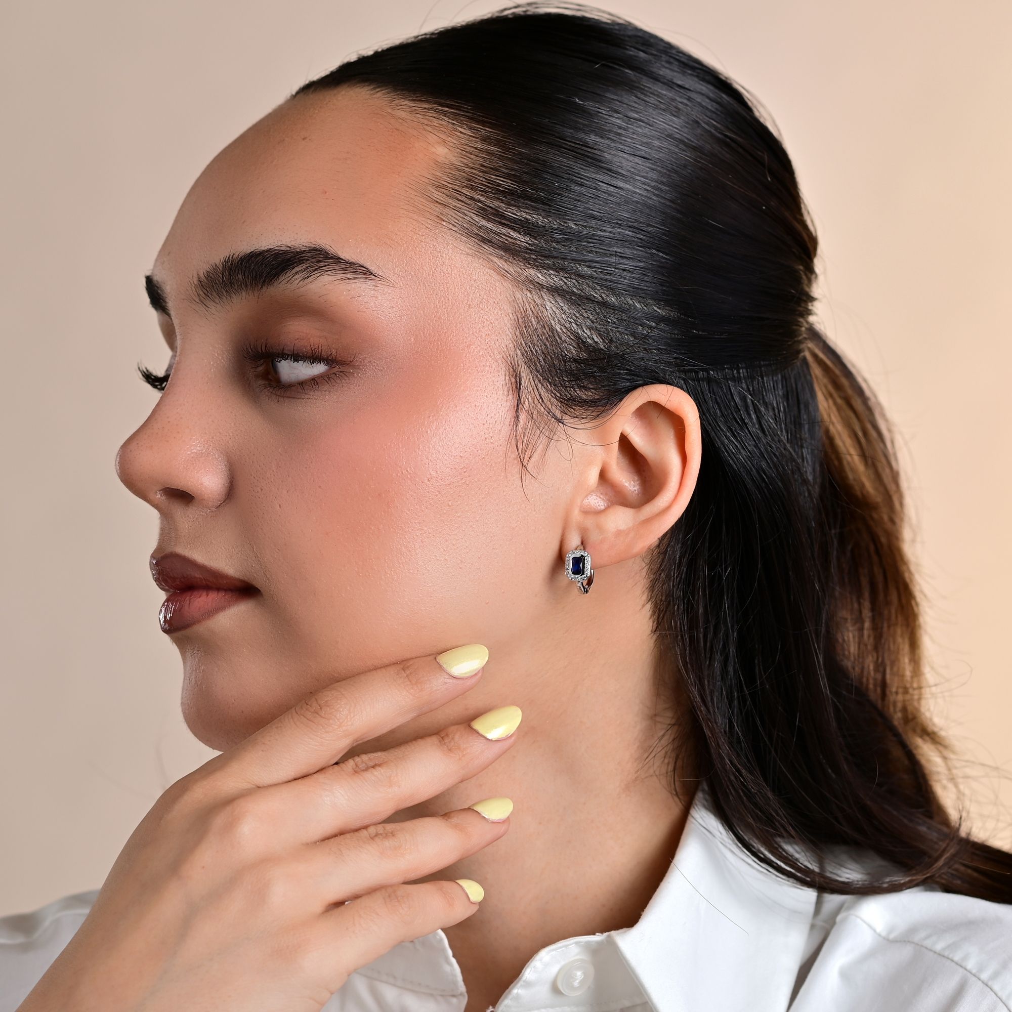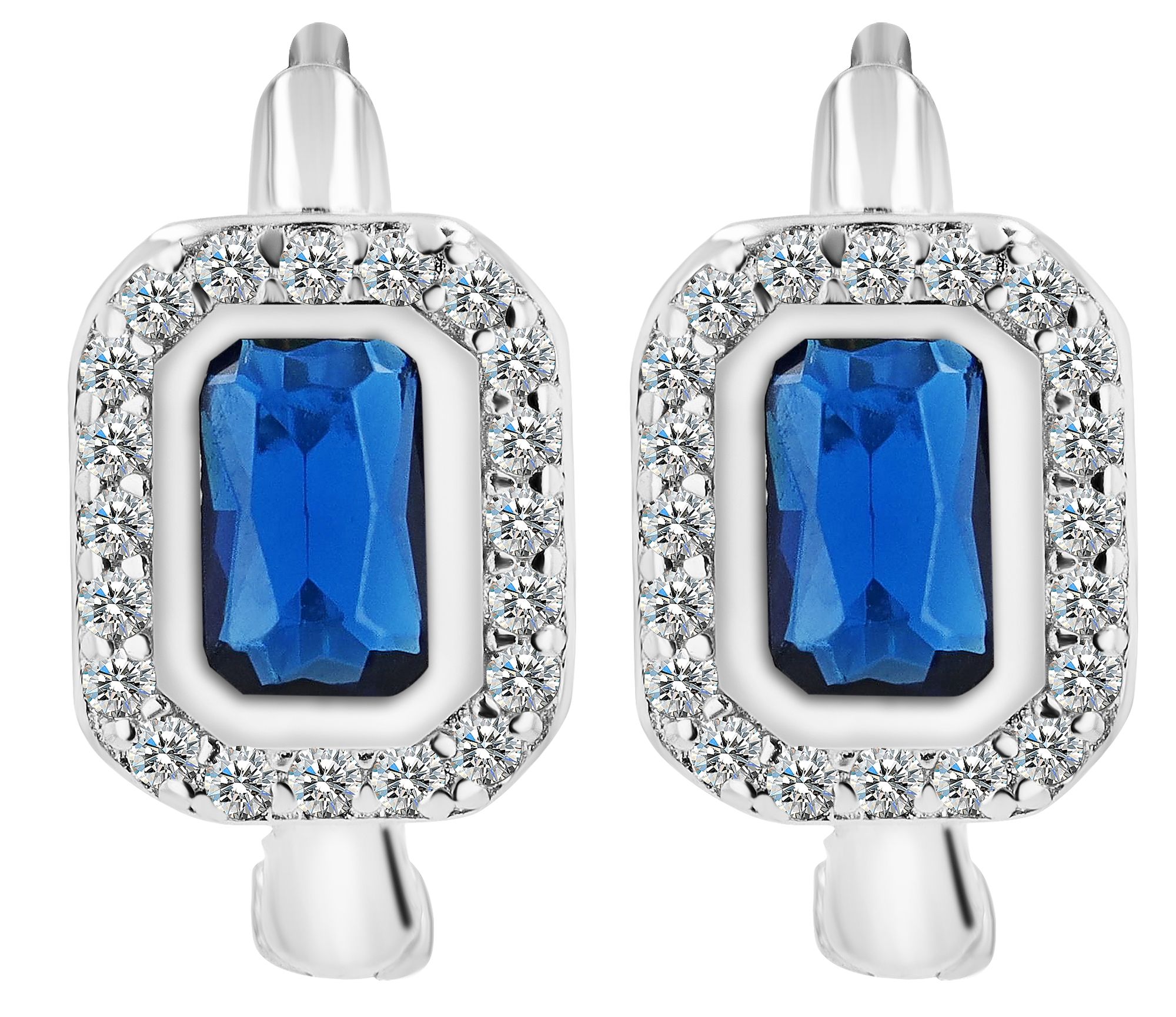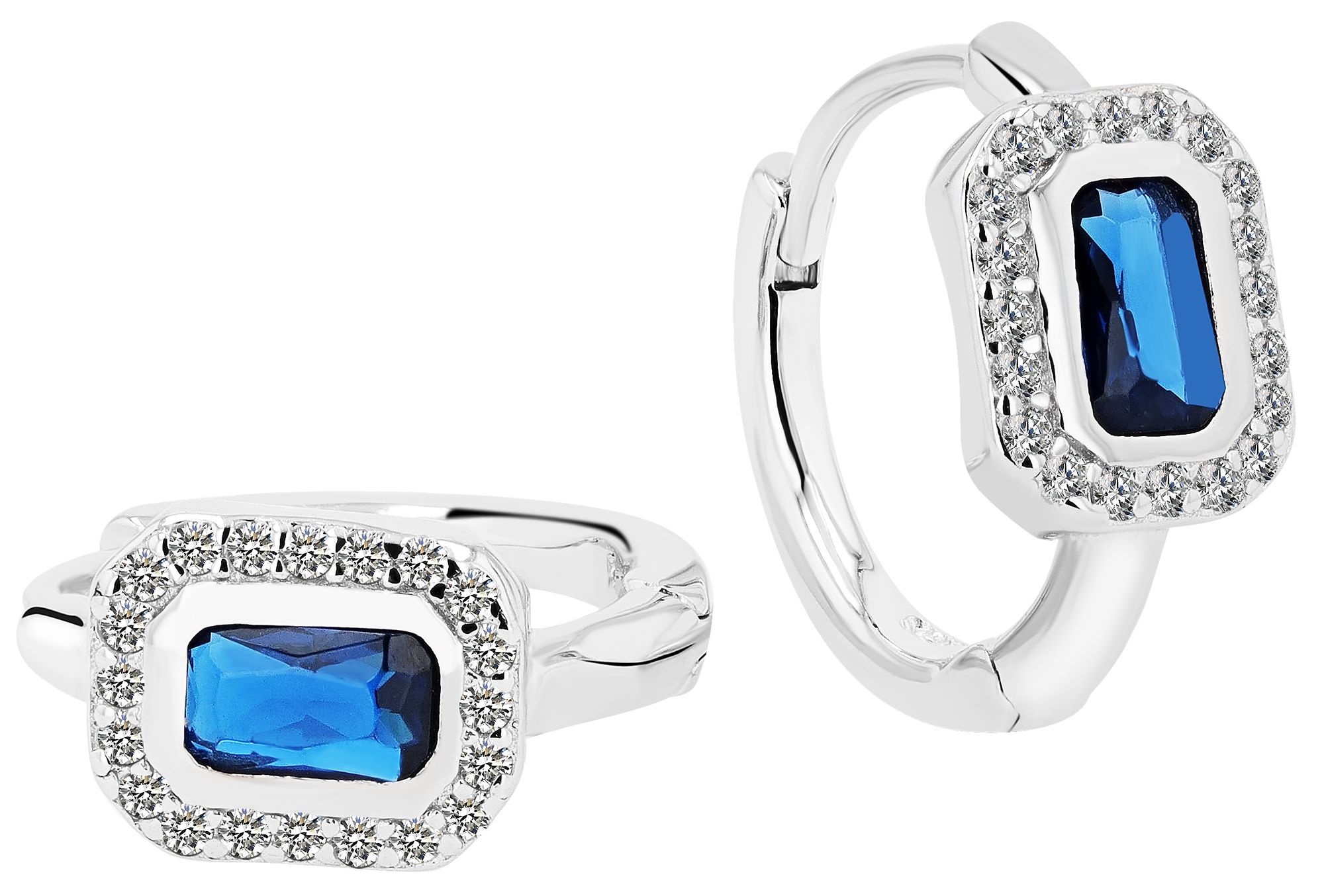 Productinformatie "925/- Echt Silber Klapp-Creolen "Liora" blauen und weißen Zirkonia, rhodiniert"