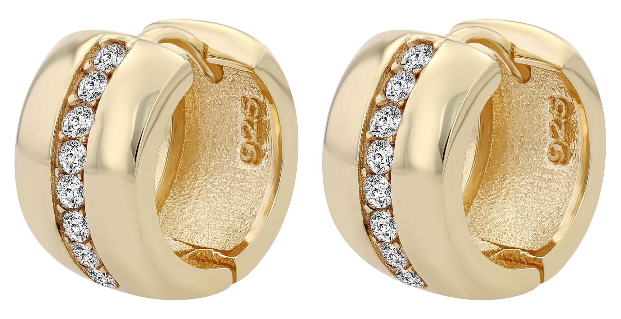 Productinformatie "925/- Echt Silber Klapp-Creolen "Poppy", Zirkoniabesatz, poliert, vergoldet"