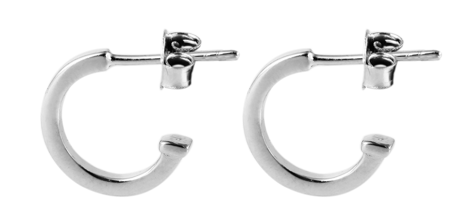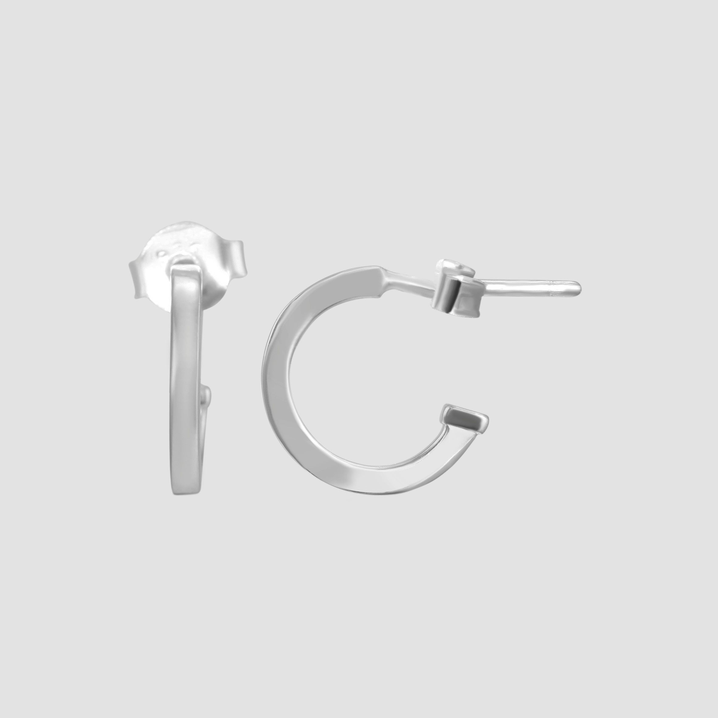 De oorstekers, in de vorm van een halve creool, zijn gemaakt van 925 sterling zilver en zijn bovendien gerhodineerd. Deze hoogwaardige coating verfijnt het materiaal, beschermt het tegen aantasting en zorgt er ook voor dat het sieraad lang blijft glanzen. Ze zijn eenvoudig en tijdloos en stralen een geweldige glans uit. De oorstekers worden bevestigd met een praktische vleugelschroef, waardoor ze gemakkelijk aan en uit te trekken zijn en goed blijven zitten. De oorbellen zijn 11,5 mm lang, 2 mm breed en 2 mm dik.