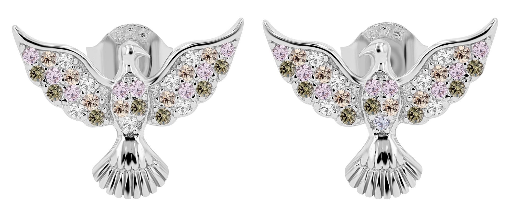 Productinformatie "925/- Echt Silber Ohrstecker "Luzmila", Taube mit mehrfarbigem Besatz, rhodiniert"
