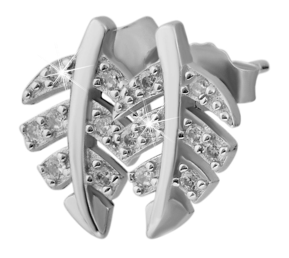 De bijzondere damessieraden in bladmotief met 32 witte zirkonia steentjes zijn gemaakt van 925/sterling zilver met bescherming tegen aanslag. De oorstekers dragen bijzonder comfortabel. De afwerking is glanzend zilver. Het artikel heeft de volgende afmetingen: Hanger lengte: 20 mm, breedte: 9 mm, dikte: 2 mm. Oorstekers lengte: 12 mm, breedte: 7,5 mm, dikte: 1,8 mm, gewicht: 2,7 gram.