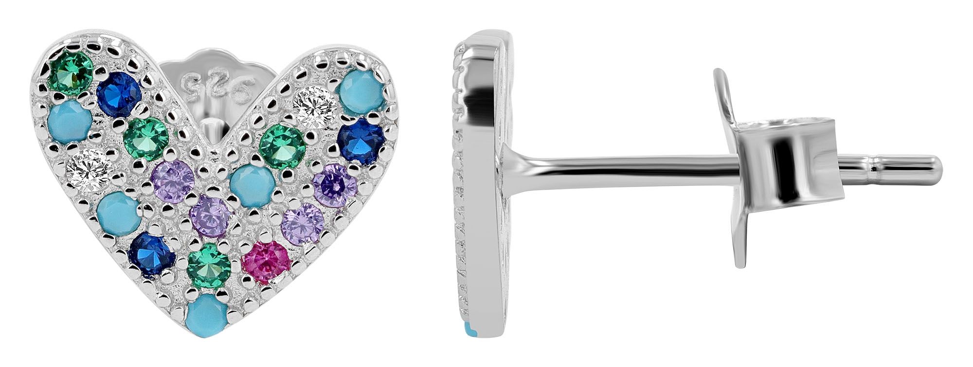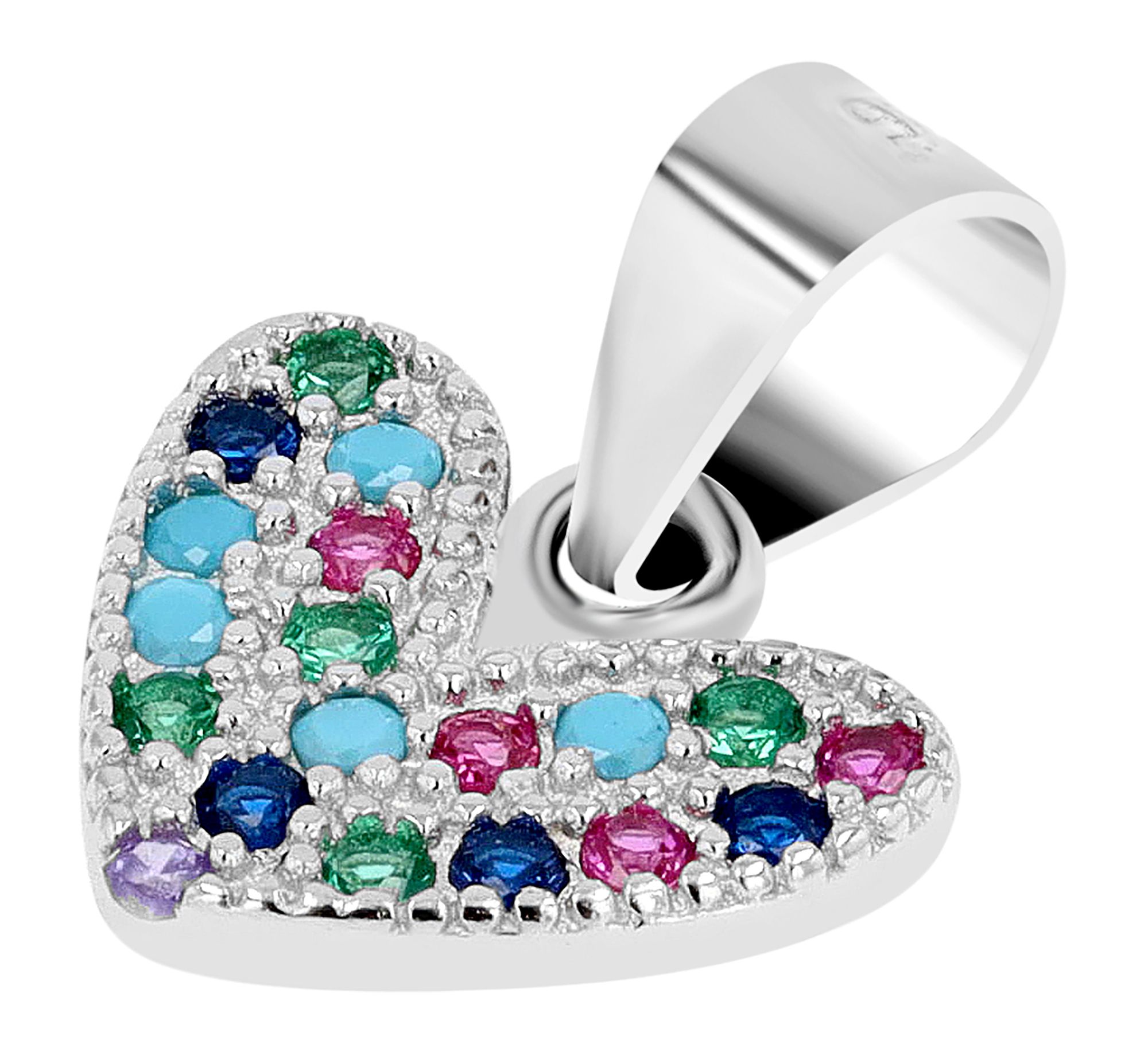 Productinformatie "925/- Echt Silber Schmuckset "Sanya", Herz Ohrstecker & Anhänger, bunter Besatz"