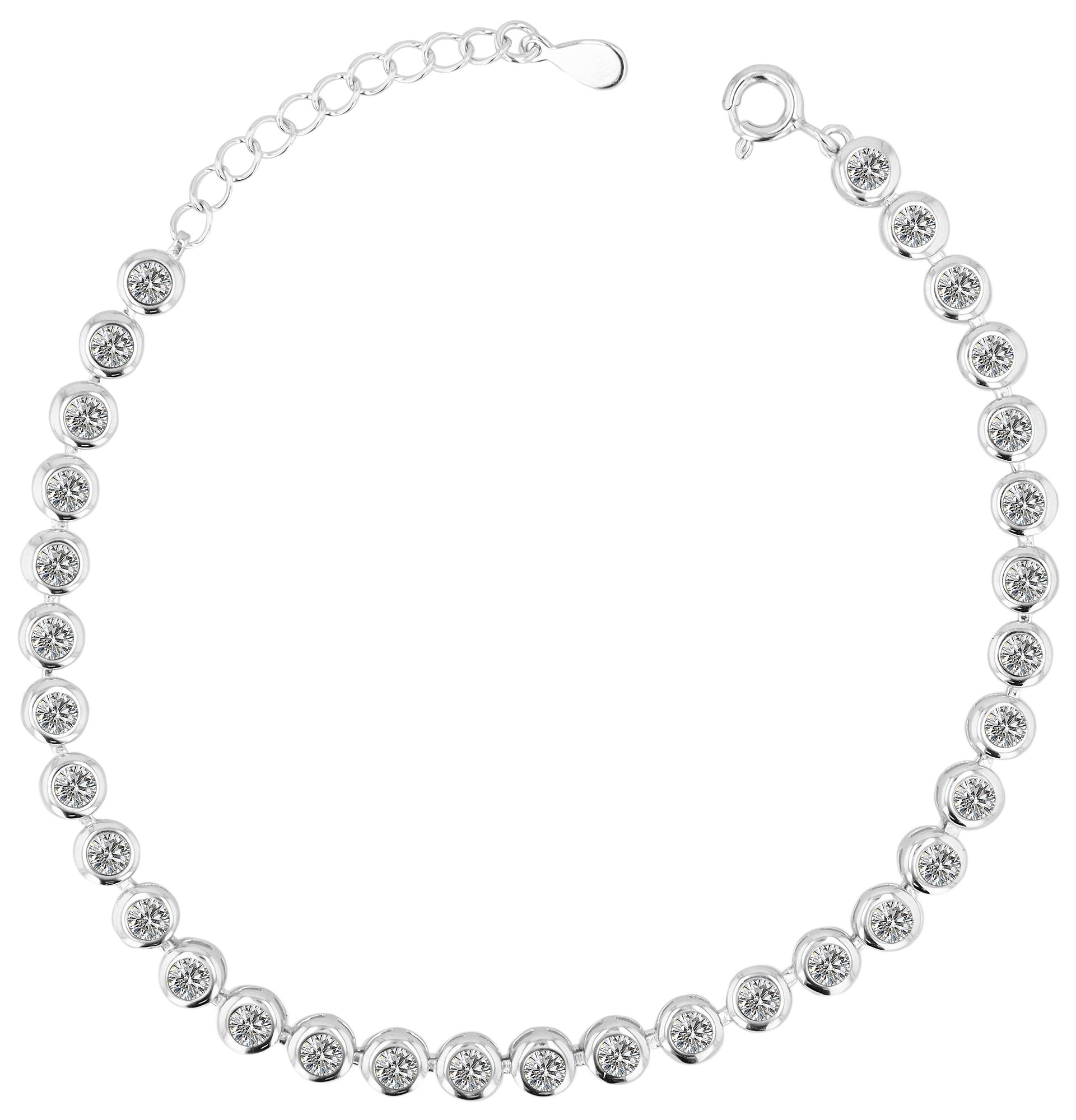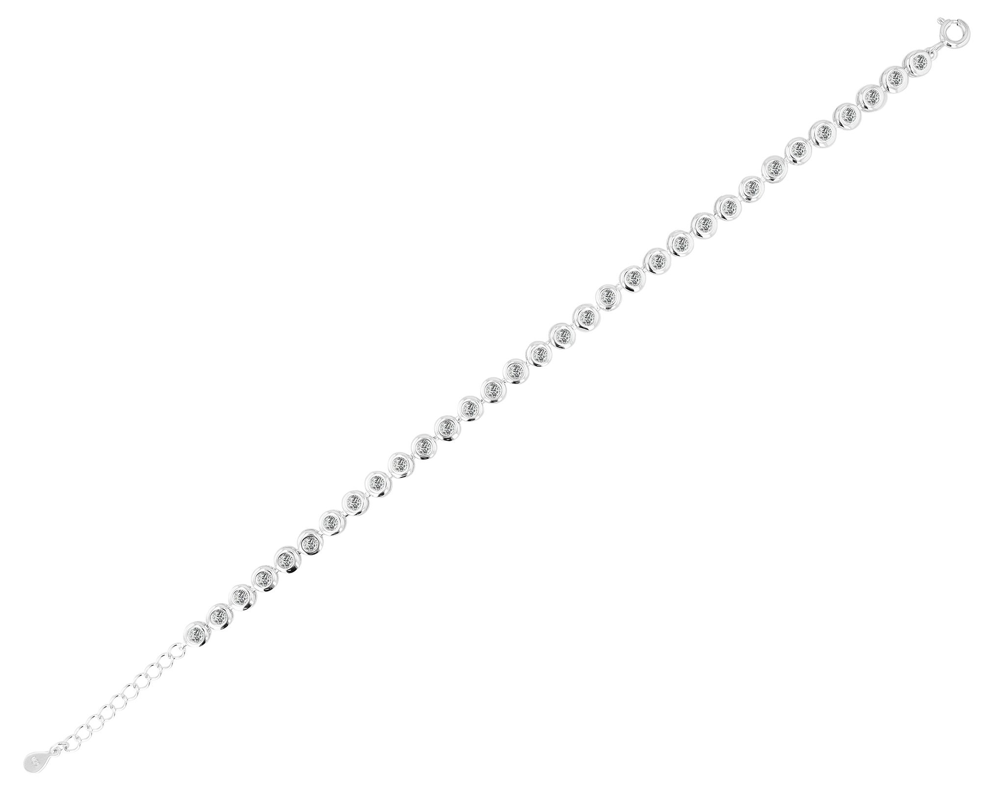 Deze armband is gemaakt van hoogwaardig 925/- echt zilver en heeft een rij ronde zirkonia steentjes die niet alleen voor een glinsterende schittering zorgen, maar ook de pols sieren met tijdloze elegantie. De hoogwaardige rhodinering van het echte zilver versterkt de stralende glans en beschermt het sieraad ook tegen ongewenste aanslag. De zilveren armband is 18 cm lang en kan worden aangepast met een extra verlengketting van 3 cm. De breedte van 5 mm en de dikte van 3 mm geven de armband een subtiele uitstraling die elke pols flatteert.