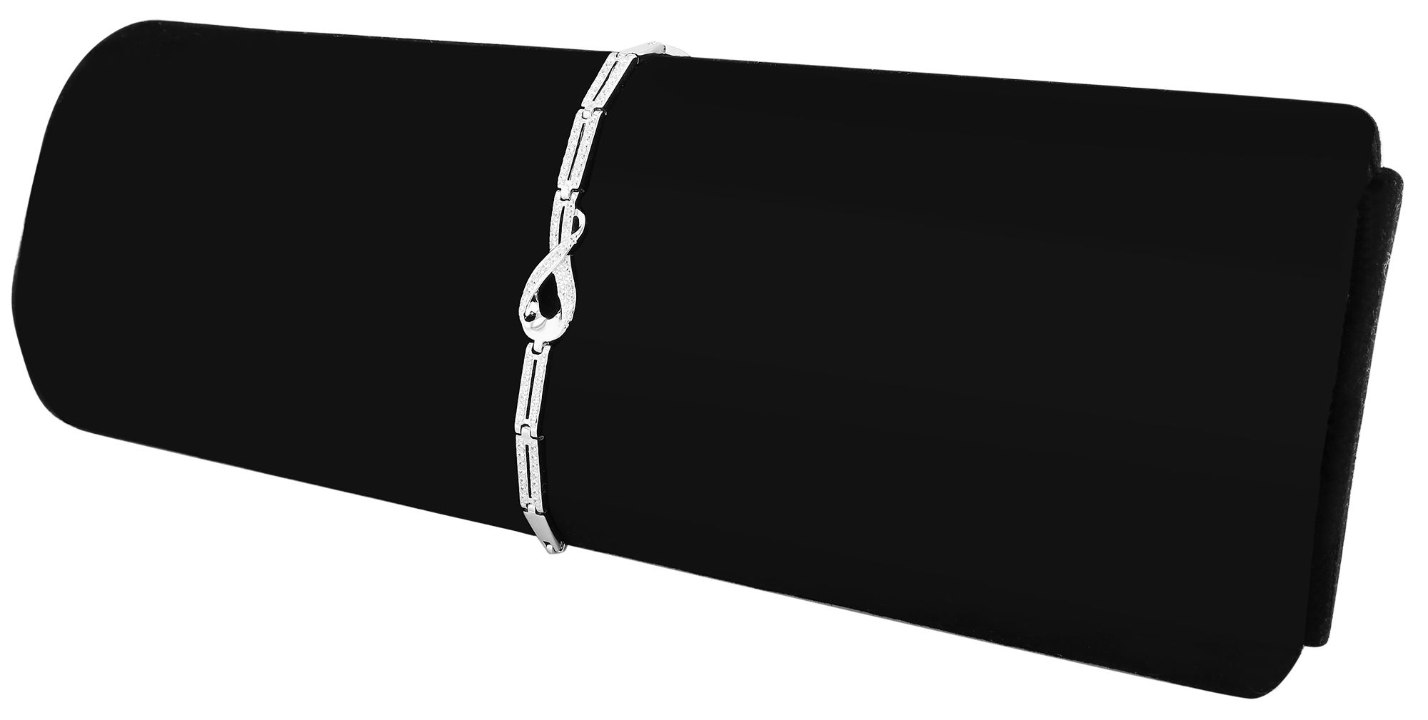 Gemaakt van hoogwaardig 925 Sterling zilver is dit bijzondere sieraad niet alleen een visueel hoogtepunt, maar belooft het ook langdurige kwaliteit. Het gerhodineerde oppervlak versterkt de stralende glans en beschermt tegen ongewenste aanslag. Het geraffineerde ontwerp van de armband integreert vakkundig verschillende elementen die het sieraad een geraffineerde en unieke touch geven. De combinatie van 925 echt zilver en de zirkonia zorgt niet alleen voor een esthetisch aantrekkelijke look, maar ook voor een lange levensduur en tijdloze schoonheid. Met een lengte van 19 + 3 cm past de zilveren armband zich comfortabel aan verschillende polsmaten aan en de sluiting in de vorm van een karabijnsluiting zorgt voor een stevige grip.