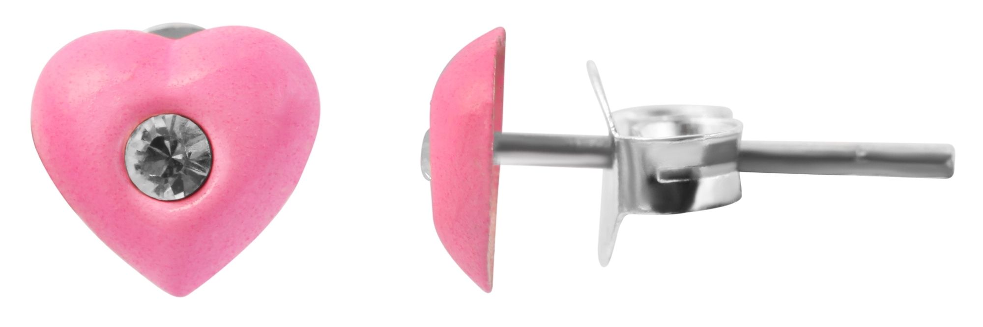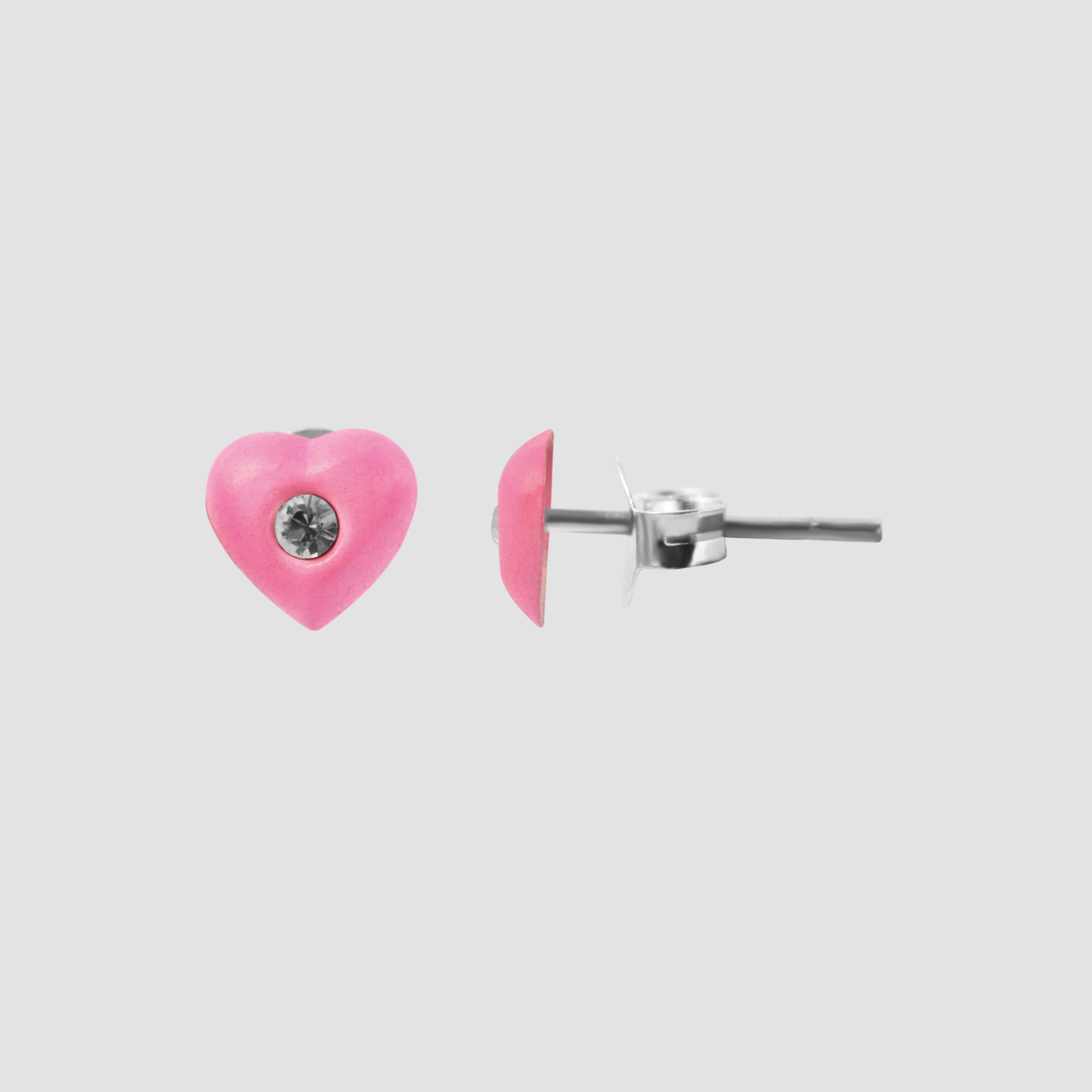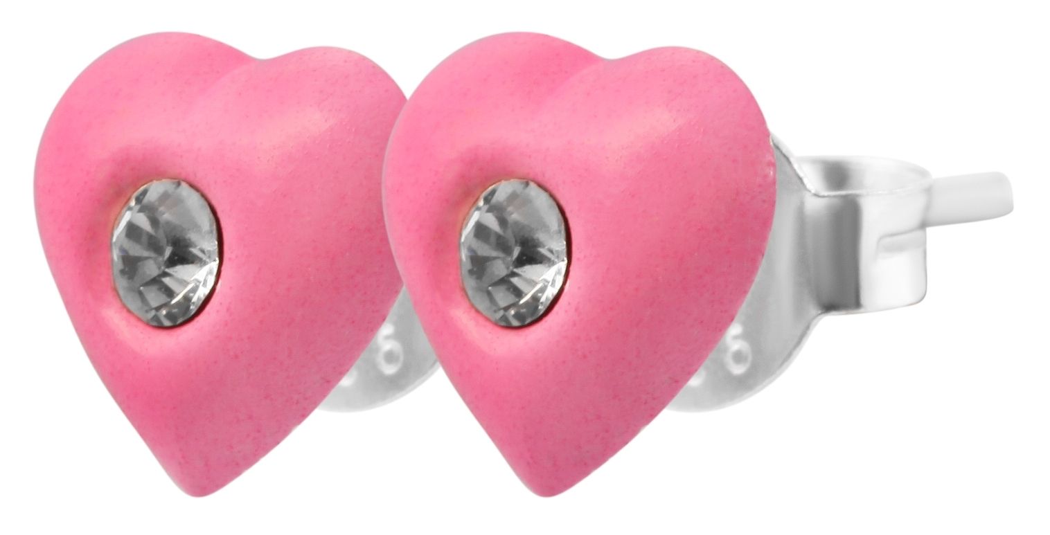 Productinformatie "925/- Echt zilveren kinder oorbellen "Amanda", hart met similiet steen, neon roze"