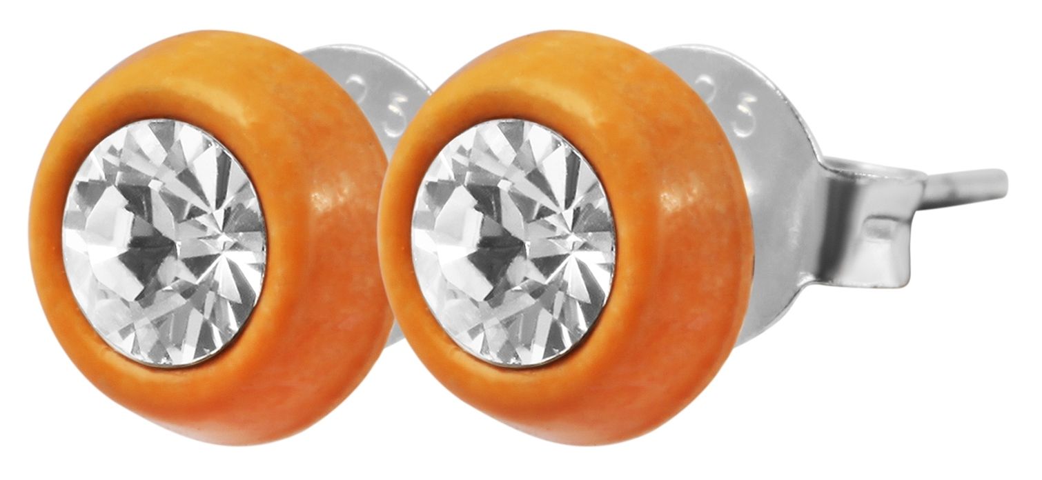 Productinformatie "925/- Echt zilveren kinder oorbellen "Lafayette", rond met similiet steen, oranje"