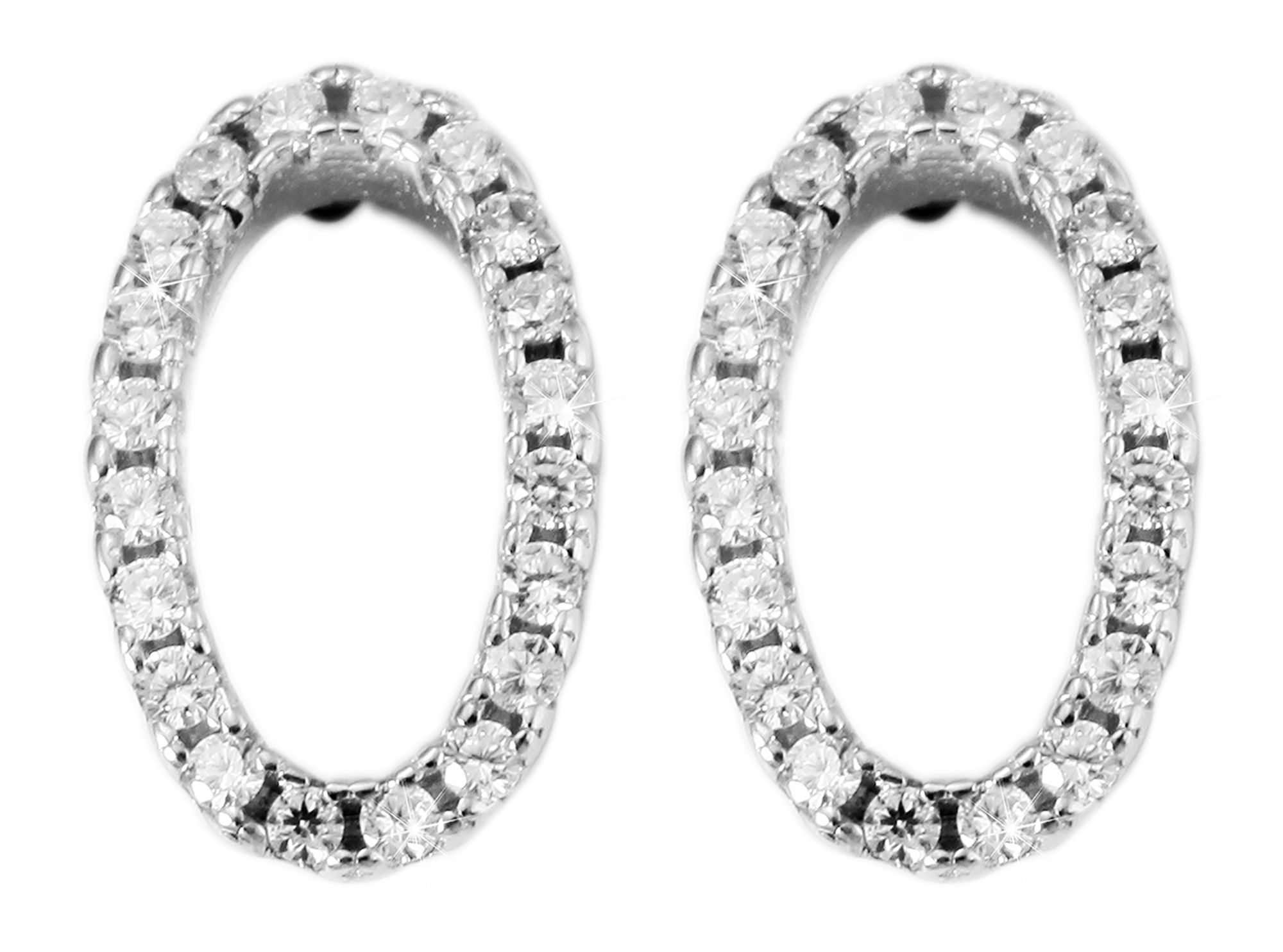 De ovaalvormige oorstekers voor dames zijn gemaakt van 925/- sterling zilver en zijn bovendien gerhodineerd. De hoogwaardige rhodiumcoating voorkomt dat de sieraden aantasten en zorgt ook voor een langdurige glans. De oorbellen zijn open in het midden en elke rand is bezet met 20 zirkonia steentjes in een prongzetting. De fonkelende stenen en de speciale vorm van de oorbellen zorgen voor een elegante look met een modieus tintje. De vrouwelijke oorstekers kunnen aan het oorgat worden bevestigd met een vleugelschroef, die ook van echt zilver is gemaakt. De maat is 12 mm lang, 7 mm breed en 2 mm dik.