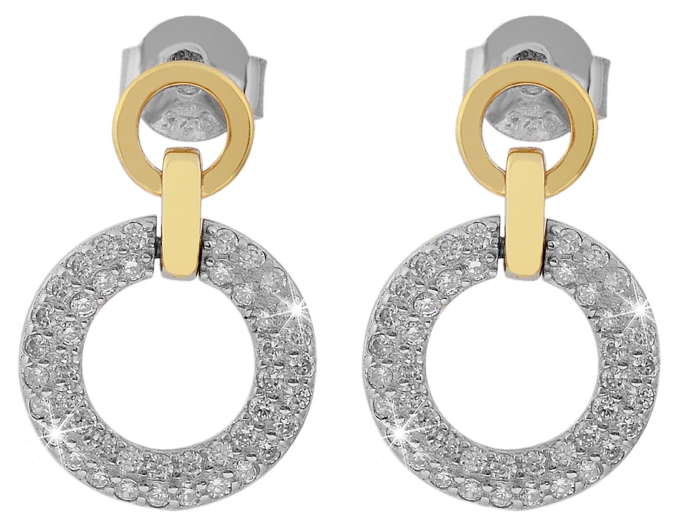 Productinformatie "925/- Echt zilveren oorsteker "Leandra" met ronde elementen en zirkonia, tweekleurig, 925/gerhodineerd"