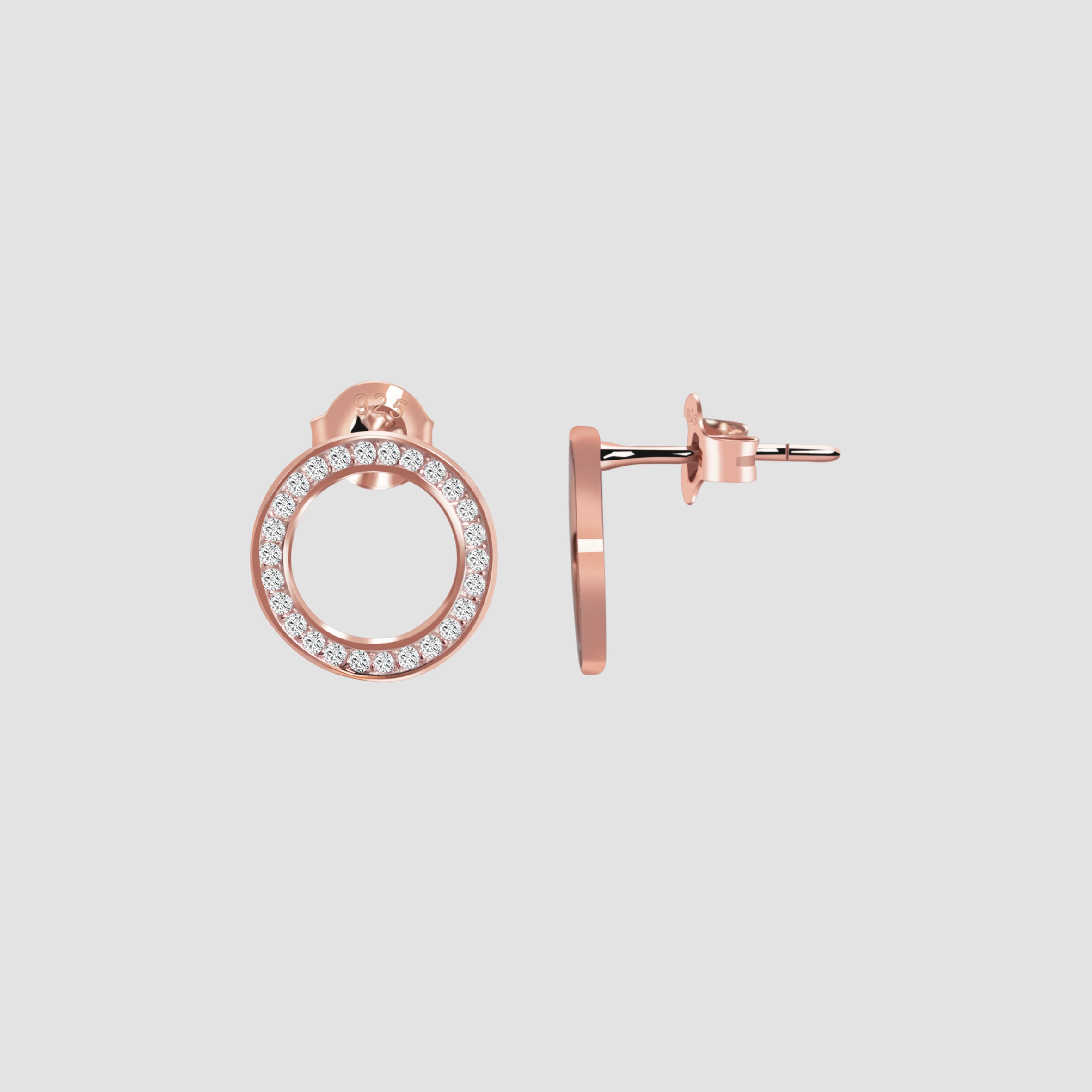 De ronde oorbellen met zirkonia zijn gemaakt van 925/- sterling zilver en roségoud verguld. Ze maken indruk met hun discrete maar moderne ontwerp en benadrukken de individualiteit van elke drager. De oorstekers kunnen aan het oorgat worden bevestigd met een vleugelschroef, die ook van sterlingzilver is gemaakt, waardoor ze comfortabel zijn om te dragen. De oorbellen hebben een diameter van 11 mm en een materiaaldikte van 1 mm. Dit product wordt geleverd op een wit juwelenkaartje. De afmetingen zijn 45 x 35 mm en ideaal om te presenteren in een passende display of om cadeau te geven.