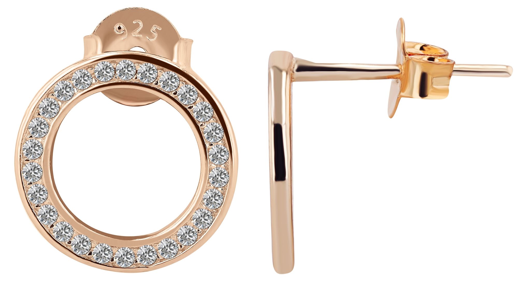 Productinformatie "925/- Echt zilveren oorstekers "Florence", zirkonia, rond, roségoud verguld"