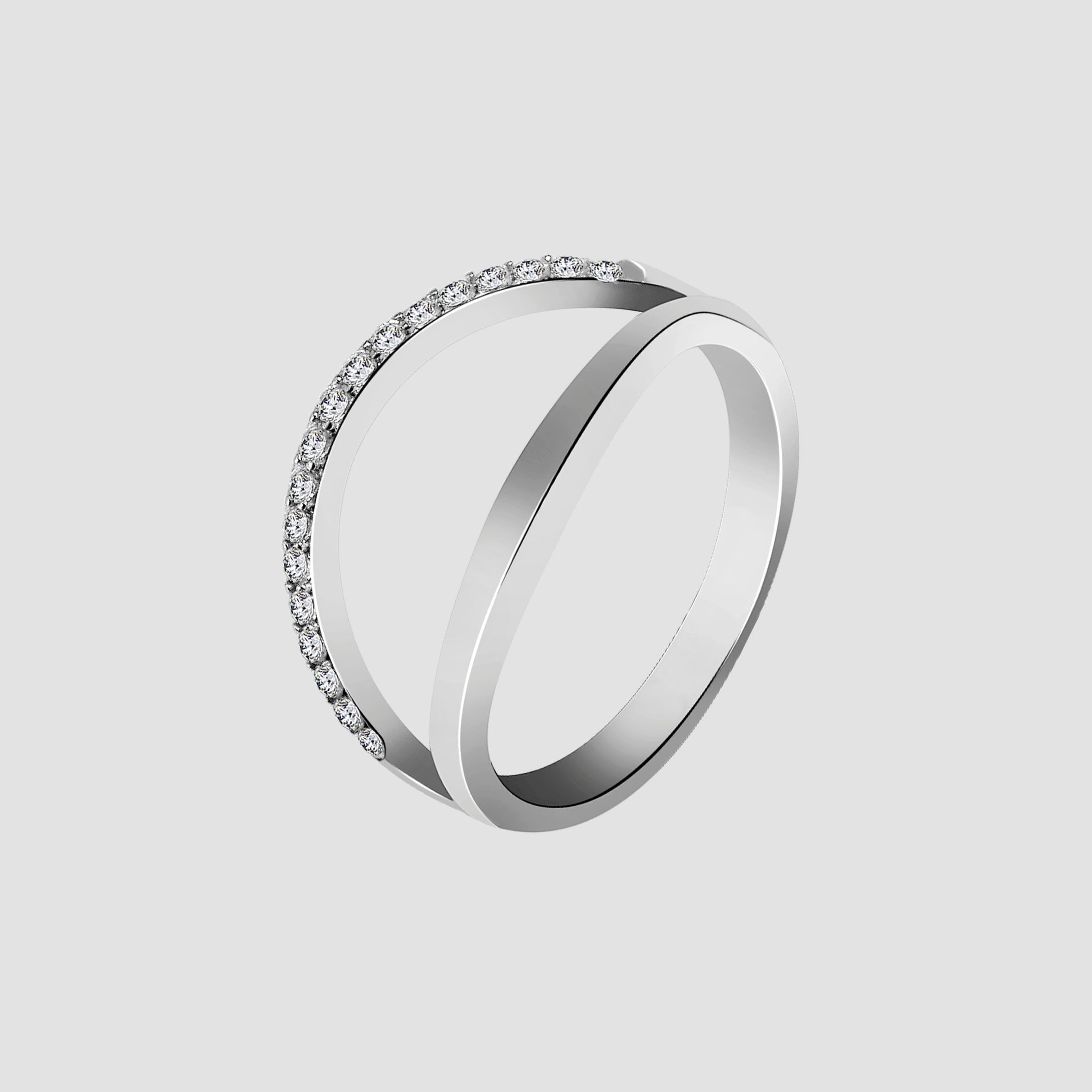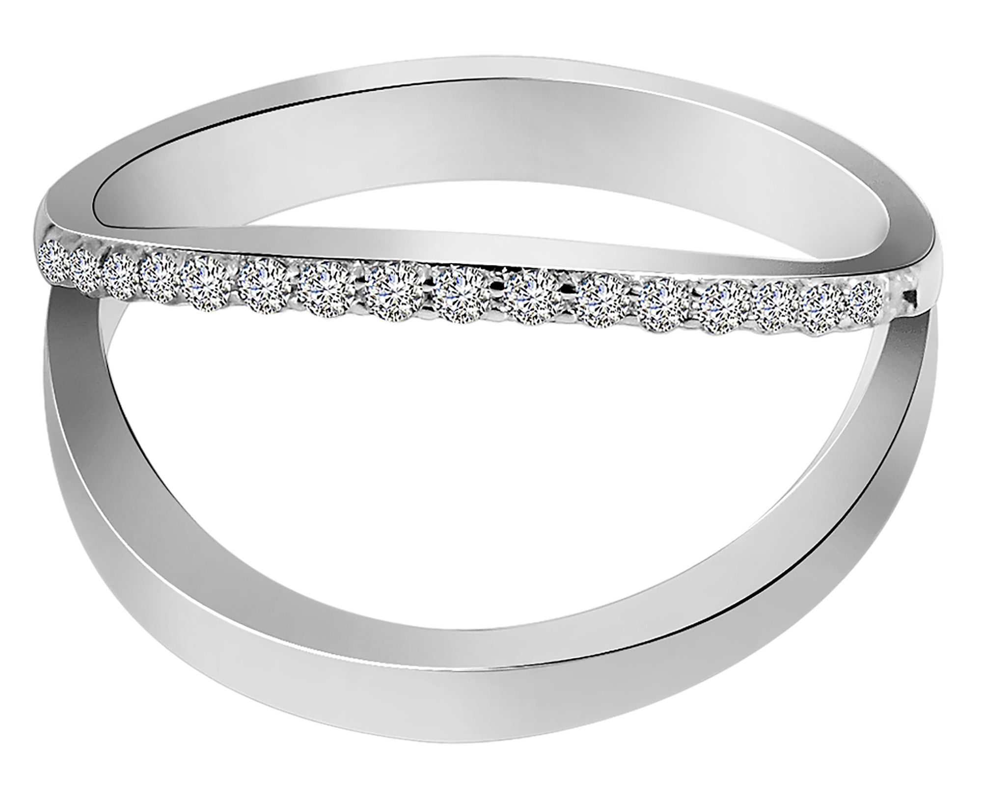 Deze elegante damesring is gemaakt van 925/- sterling zilver en is bovendien gerhodineerd. De hoogwaardige rhodiumlaag beschermt het sieraad tegen aantasting. De oppervlakteafwerking is ook zeer gepolijst, waardoor de vingerring een schitterende glans heeft. De 18 fonkelende zirkonia steentjes die een van de ringschachten sieren, dragen hier ook aan bij. Het bijzondere aan deze ring is het tweedelige ontwerp. Dit is gemaakt van twee ringschachten, zodat beide ringen taps toelopen in een V en daar samengevoegd zijn. De zilveren ring is verkrijgbaar in ringmaten 48 - 62, heeft een breedte van 13 mm en een materiaaldikte van 3 mm. Hij kan worden gepersonaliseerd met een filigraan gravure aan zowel de binnen- als buitenkant, waardoor het een heel persoonlijk accessoire wordt dat ideaal is als cadeau - bijvoorbeeld voor een verloving, verjaardag of Valentijnsdag.