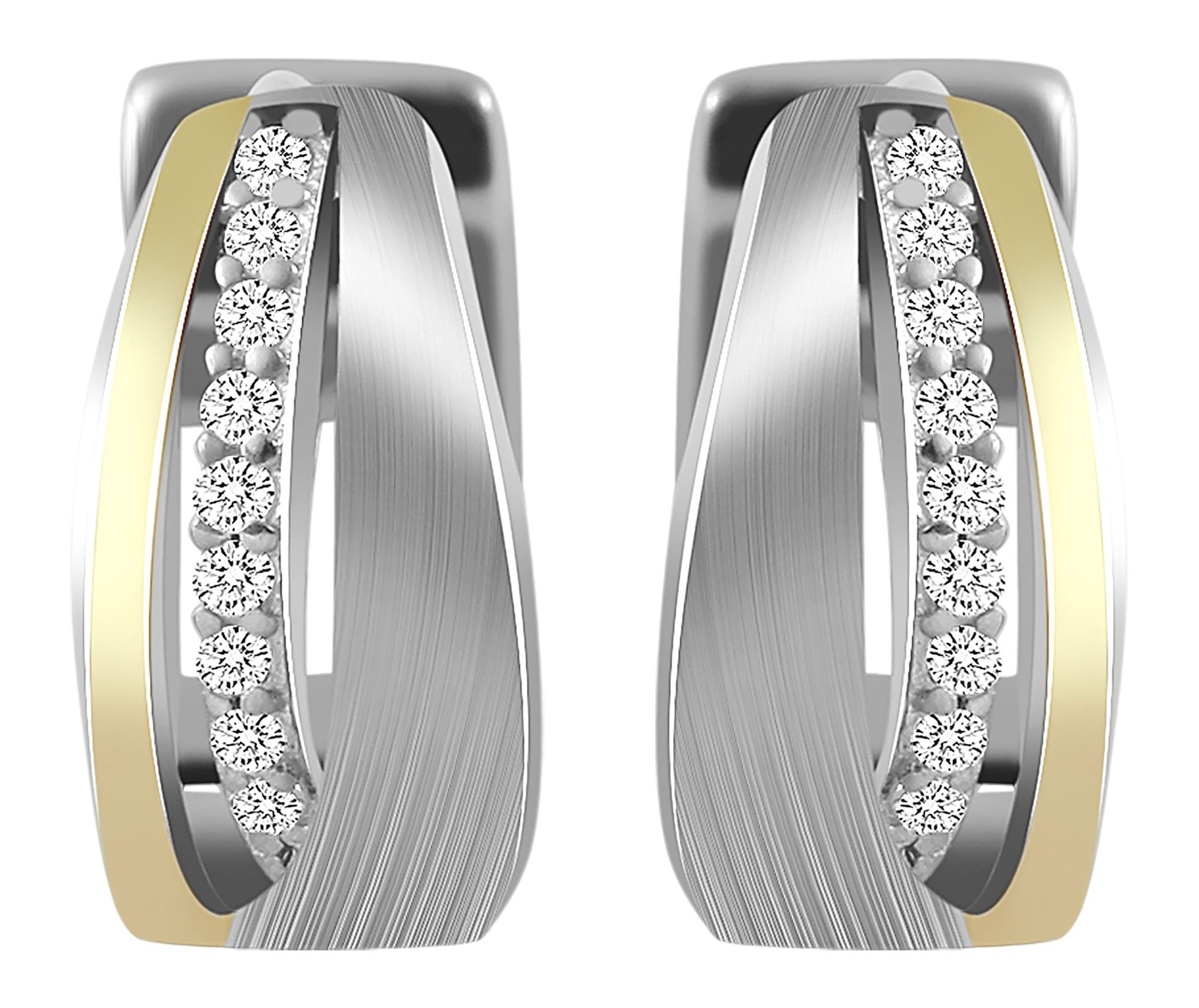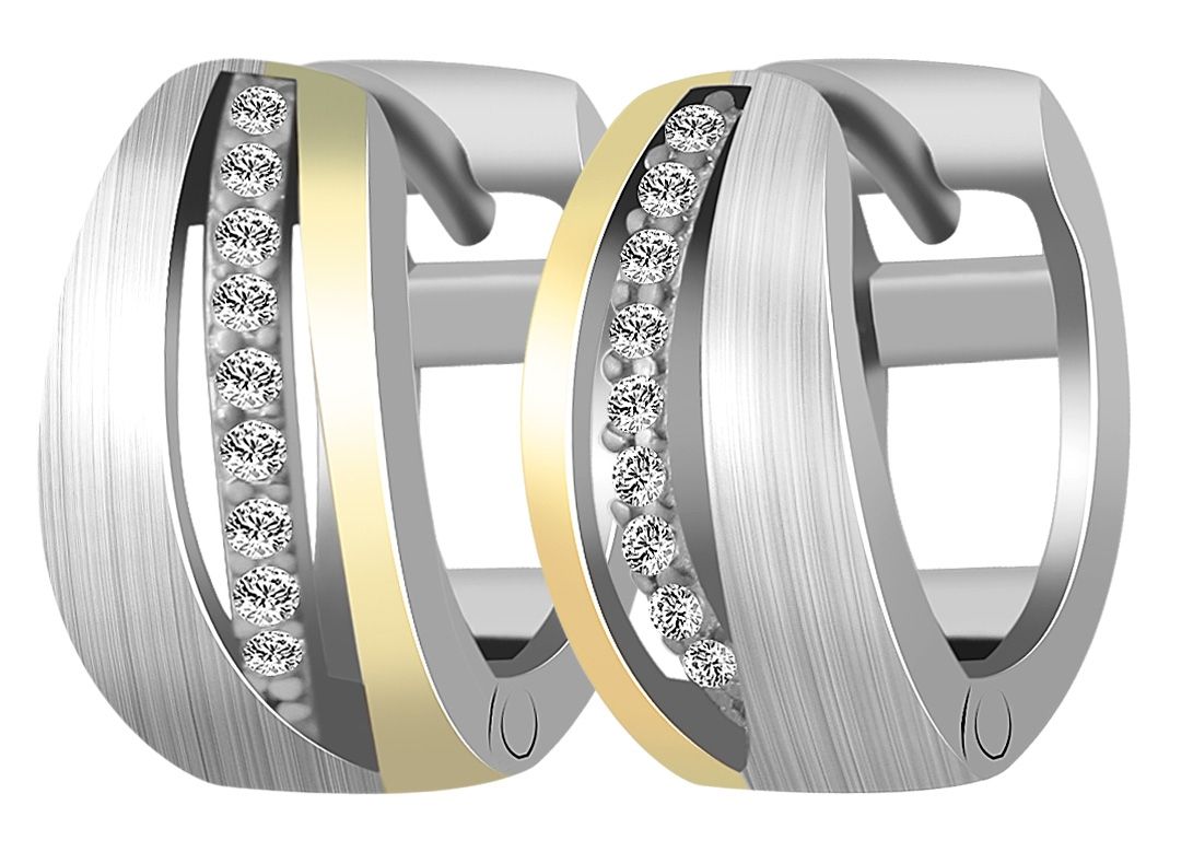 Productinformatie "925/- Echt zilveren scharnierende hoepel oorbellen "Haldis" met zirkonia, tweekleurig"