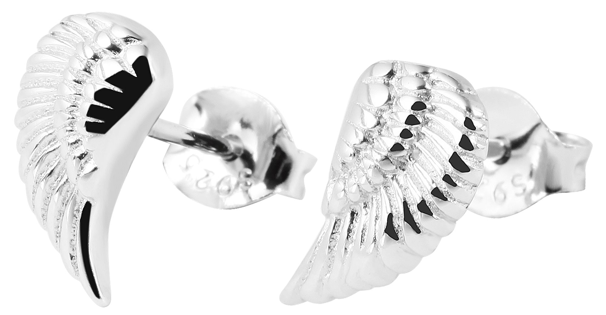 Productinformatie "925/- Echt zilveren vleugel oorbellen "Frauke", 925/gerhodineerd"