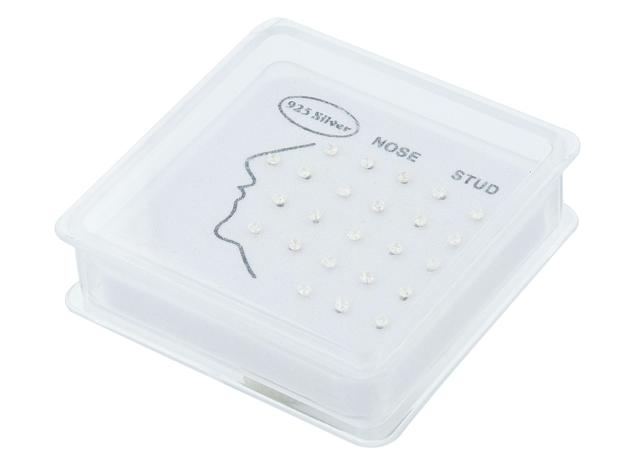 Geliefert werden die Nasenstecker in einer transparenten Box (6 x 6 x, 1,6 cm) die nicht nur eine ordentliche und hygienische Präsentation ermöglicht, sondern auch für eine leichte Entnahme der Piercings sorgt.