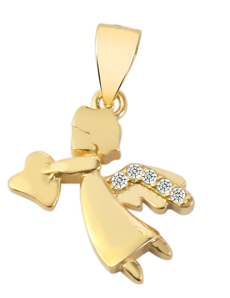 Productinformatie "925/- echt zilveren hanger zonder ketting "Duska", engel, zirkonia zetting, verguld"