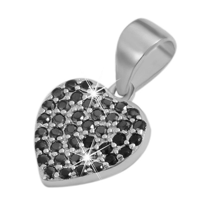 Productinformatie "925/- echt zilveren hanger zonder ketting "Pariya", hart met zwarte zirkonia stenen, 925/gerhodineerd"