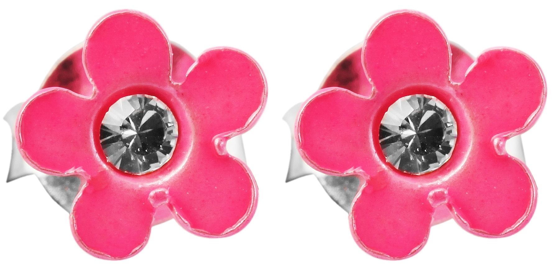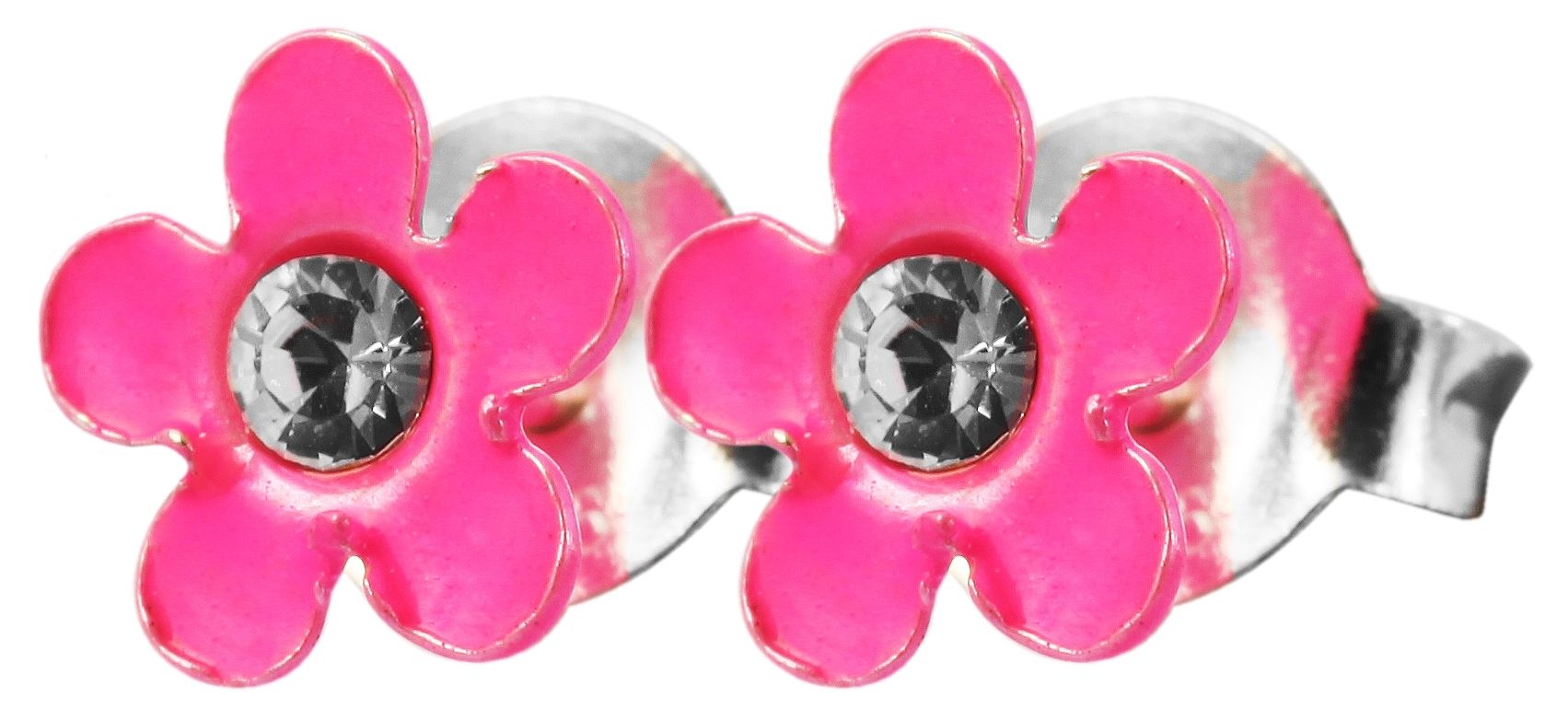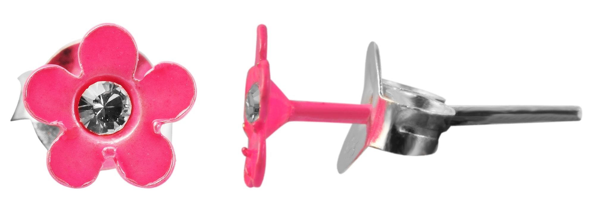 Productinformatie "925/- echt zilveren kinder oorbellen "Florette", bloem met similiet steen, neon roze"