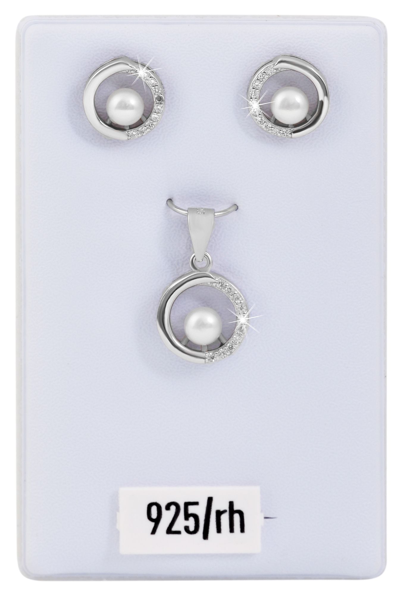 Productinformatie "925/- echt zilveren parelsieraden set hanger "Ediesa", oorstekers rond met zirkonia"