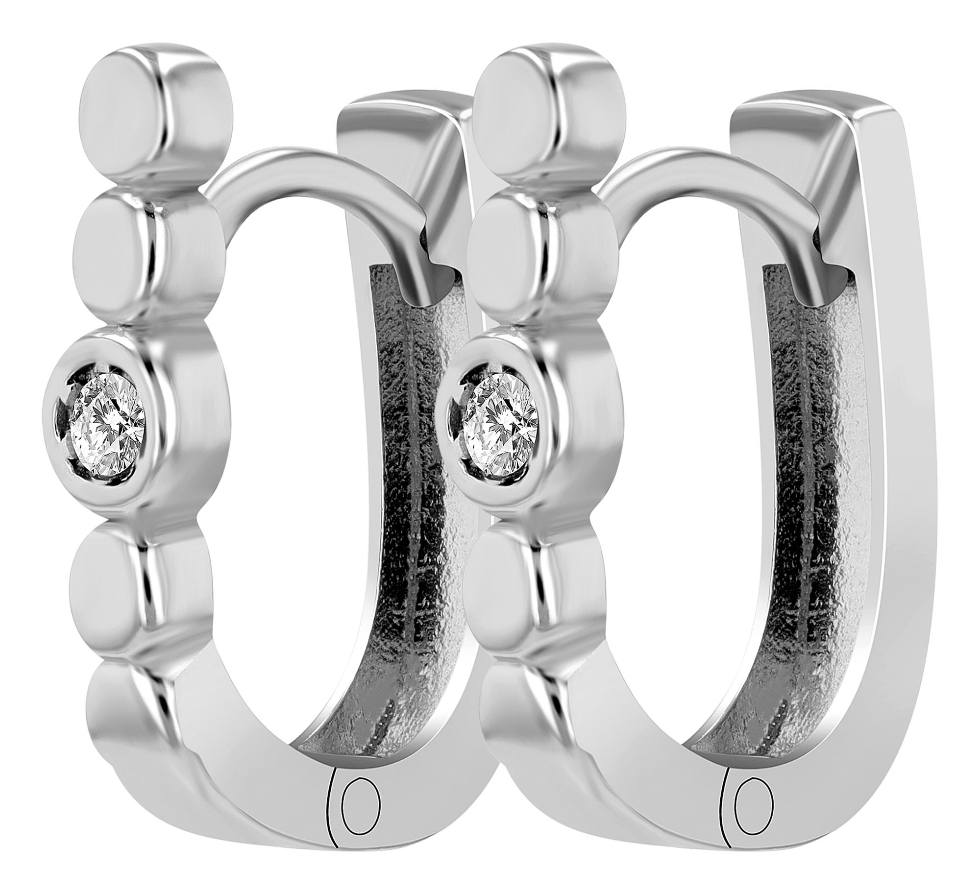 Het bijzondere ontwerp van het voorste gedeelte bestaat uit vijf elegante stippen, waarvan de middelste is versierd met een fonkelende zirkoon. Dit subtiele detail geeft de creool een vleugje glamour en elegantie waarmee het zich onderscheidt van andere sieraden.