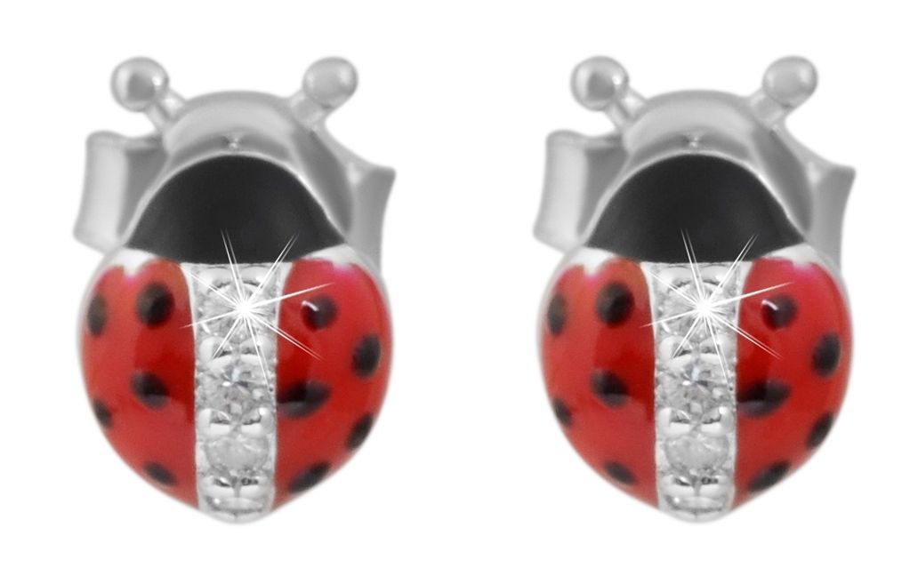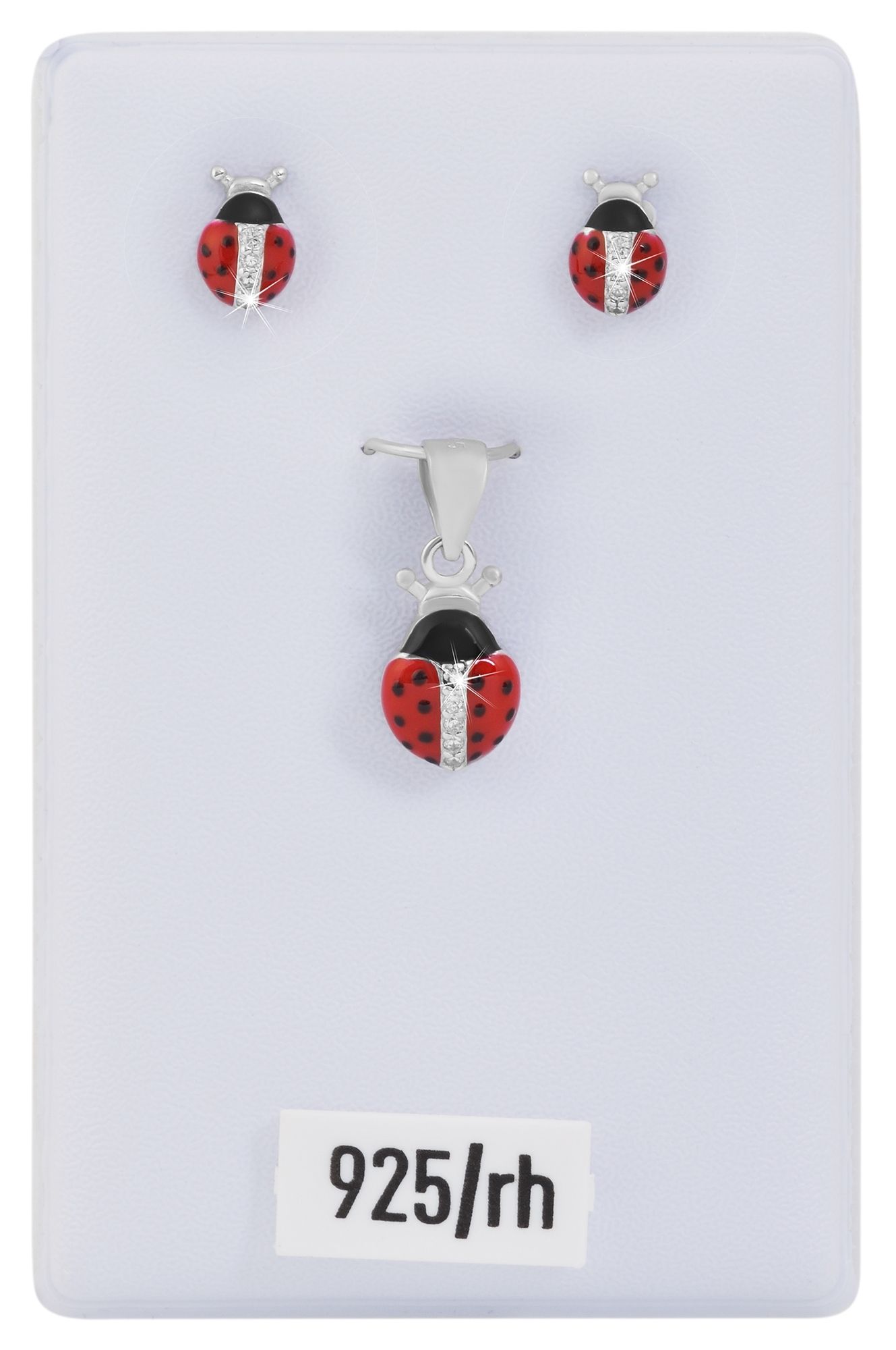 Productinformatie "925/- echt zilveren sieradenset "Celira" voor kinderen, lieveheersbeestje oorstekers en hanger, 925/gerhodineerd"