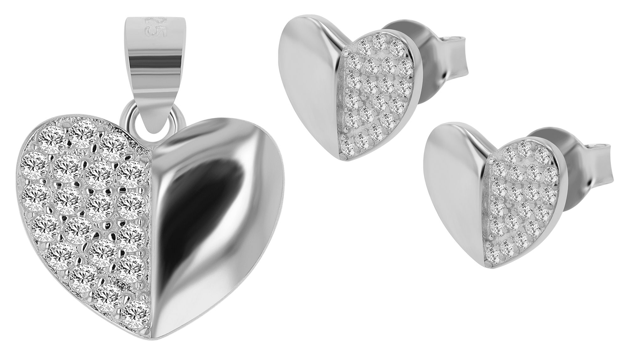 Productinformatie "925/- echt zilveren sieradenset "Lio", hart ontwerp, oorbellen & hanger, gerhodineerd"