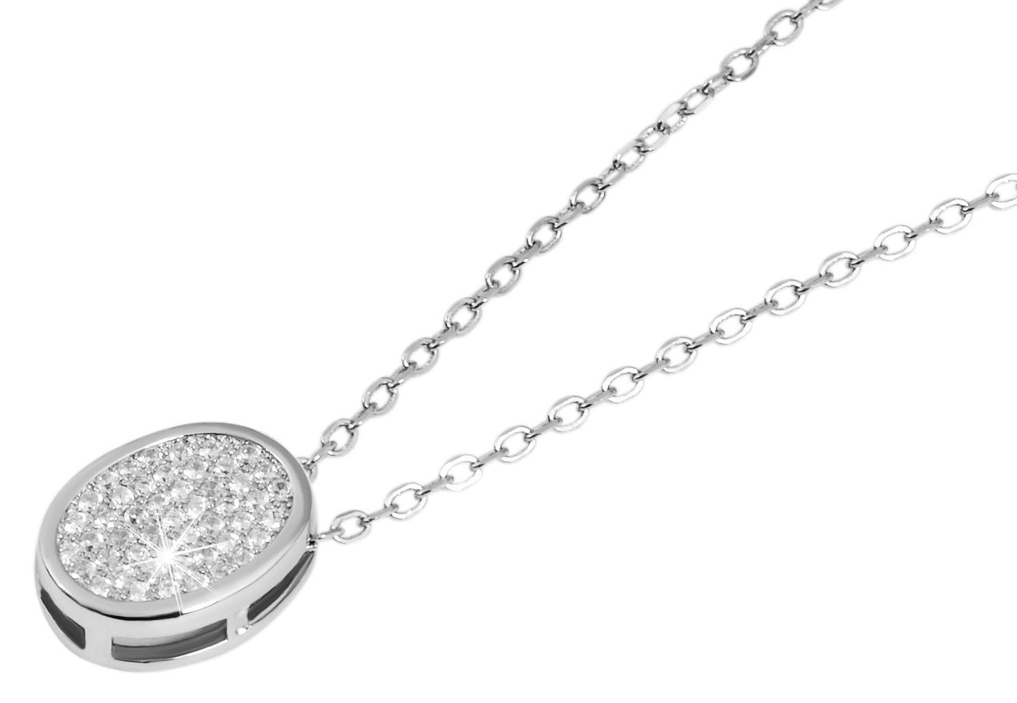 De sieradenset, bestaande uit ovale oorbellen en een bijpassende ketting met hanger, is gemaakt van 925 sterling zilver en is bovendien gerhodineerd. Deze hoogwaardige coating beschermt de sieraden tegen aanslag en zorgt voor een langdurige glans. De ovale oorbellen zijn elk volledig bezet met 29 zirkonia steentjes. Ze zijn 9 mm lang, 7 mm breed en 3 mm dik. De oorbellen kunnen met een vleugelschroef aan het oorgat worden bevestigd. De bijpassende ketting met hanger, die hetzelfde design heeft als de oorbellen, kan perfect gecombineerd worden met de oorbellen. De ketting met ankerpatroon is 42 cm lang en 1 mm dik. Met een extra verlengstuk kan het 3 cm worden verlengd. Het kan aan de hals worden vastgemaakt met een karabijnsluiting. De ovale hanger is ook versierd met 49 zirkonia steentjes. De grootte komt voort uit een lengte van 12 mm, een breedte van 9 mm en een dikte van 4 mm. Al met al is de sieradenset een geweldige blikvanger en ook ideaal als cadeau.