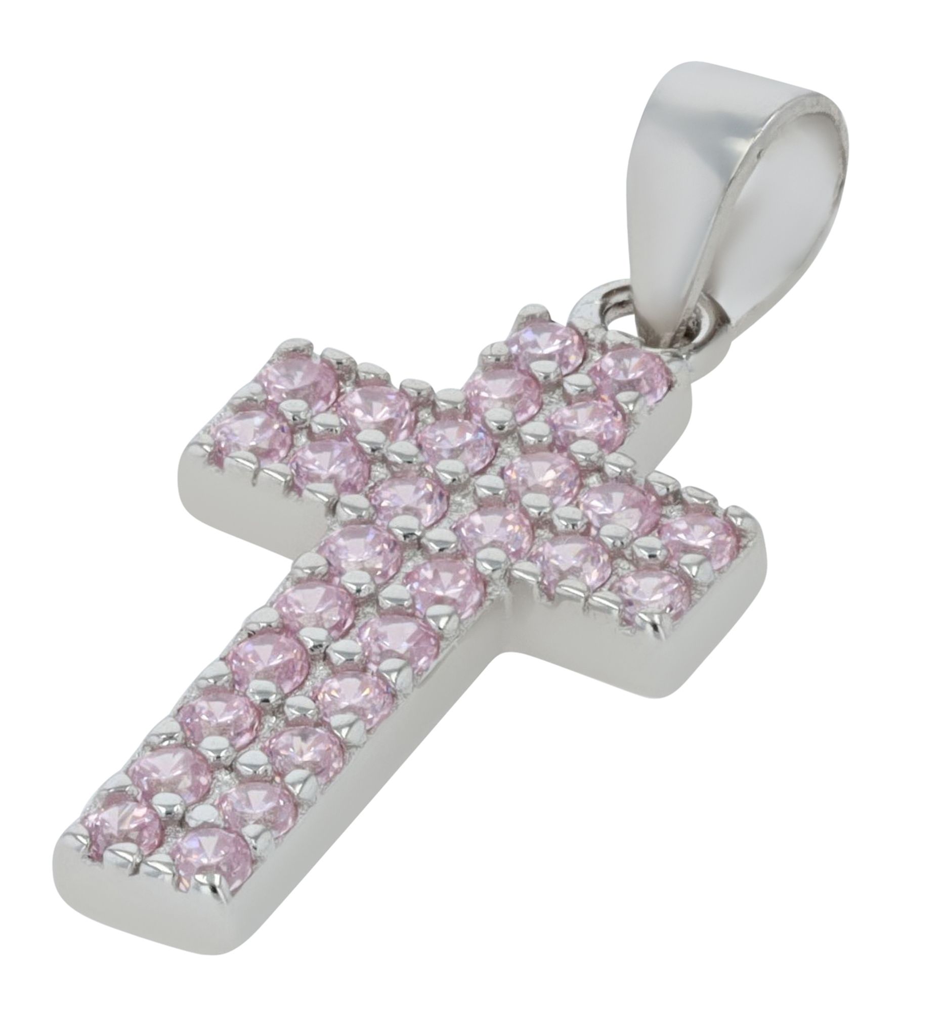Productinformatie "925er Echt Silber Kreuz Anhänger "Thesaly", rosafarbener Zirkoniabesatz, rhodiniert"