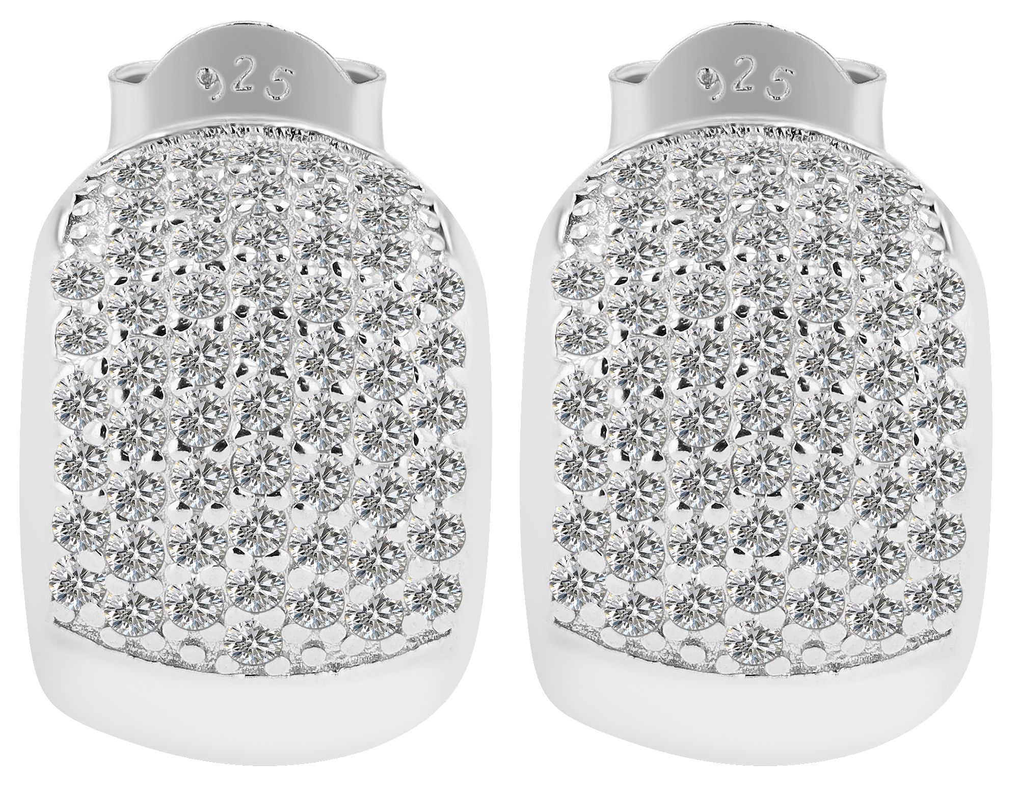De open hoepel oorbellen zijn gemaakt van gerhodineerd 925 sterling zilver. Elke hoepel oorbel is versierd met in totaal 58 zirkonia steentjes. Deze zijn gerangschikt in 7 rijen. De stenen geven de oorbellen een elegante look. De rhodium plating beschermt de oorsieraden tegen aantasting en geeft ze een heldere glans. Met een diameter van 9,5 mm en een breedte van 1 mm zijn de oorstekers comfortabel om te dragen. De vleugelsluiting zorgt voor een stevige grip.