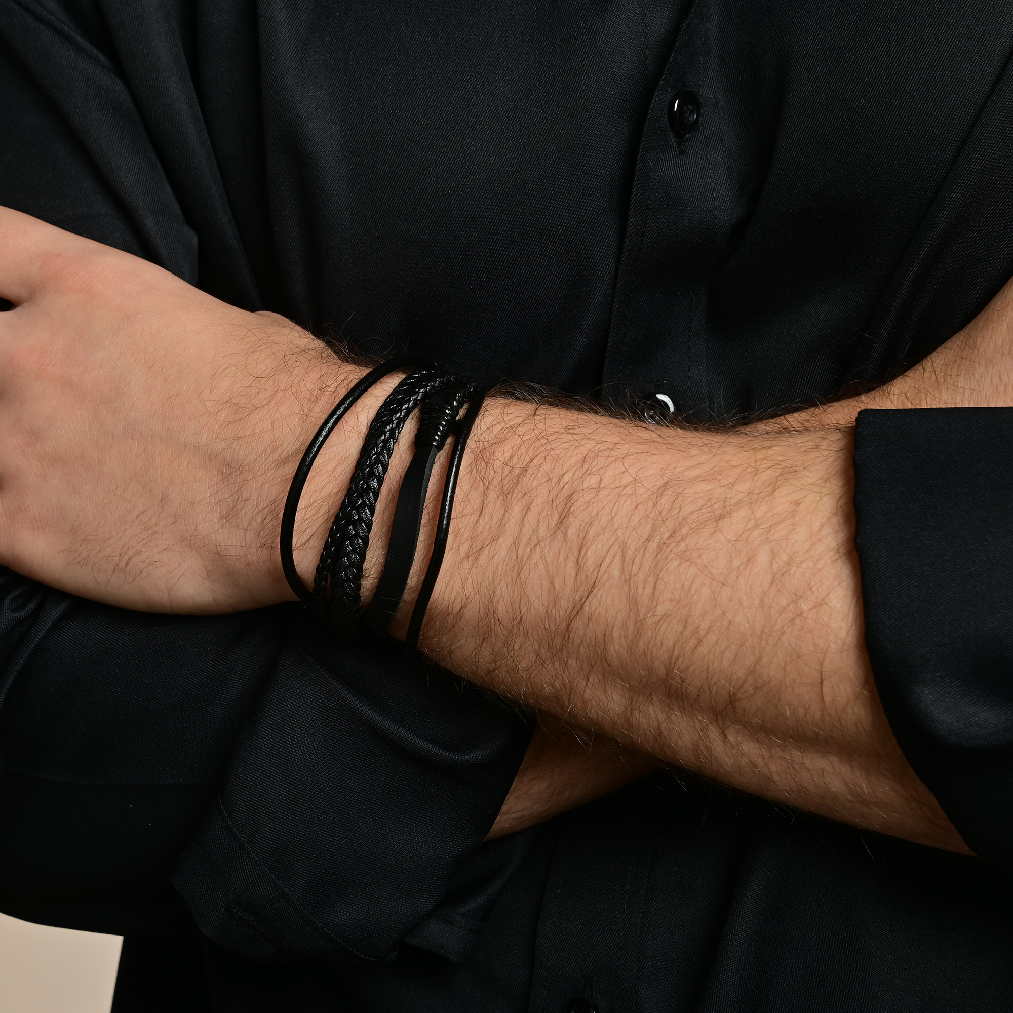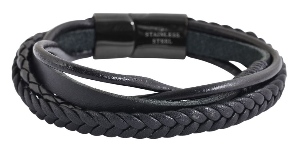 De vijfrijige, zwarte sieradenarmband van het merk Akzent is gemaakt van echt leer en is een geweldige blikvanger voor elke pols. Er zijn vijf bandjes verwerkt in drie verschillende vormen. Drie ronde bandjes, één plat bandje van 6 mm breed en één gevlochten bandje van 8 mm breed. Deze moderne armband kan worden geopend en gesloten met een zwarte magnetische roestvrijstalen sluiting. De echt lederen armband heeft een lengte van 22 cm. De sieradenarmband kan op verschillende manieren gecombineerd worden en is geschikt voor elke gelegenheid. Of het nu voor een bruiloft is of in het park met vrienden, de leren armband maakt elke outfit compleet. Het is ook een uitstekend cadeau. Bijvoorbeeld voor een verjaardag, Valentijnsdag of Kerstmis.