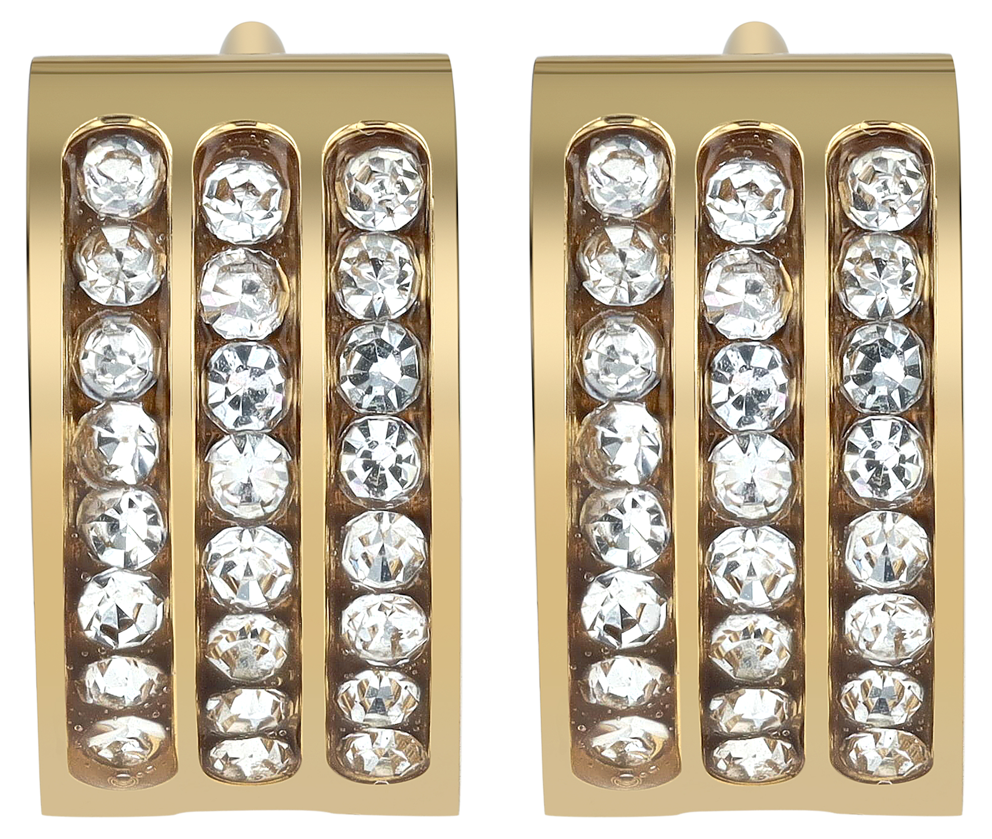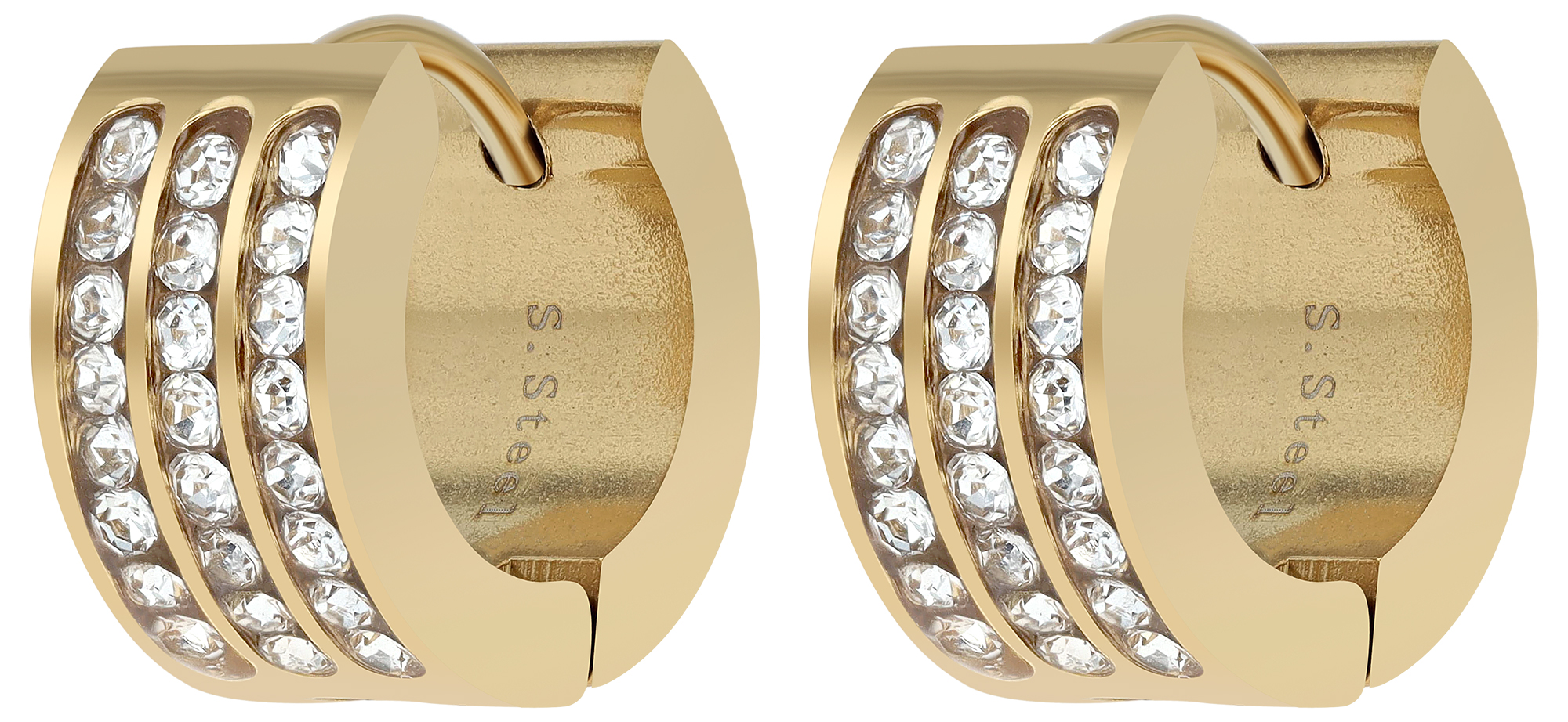 De tijdloze scharnierende hoepeloorbellen van het merk Akzent zijn gemaakt van roestvrij staal, zijn versierd met drie rijen fonkelende simili-stenen en glanzen met een gepolijst oppervlak. Het zijn tijdloze accessoires en daarom ideaal om iets extra's toe te voegen aan elke outfit. Dankzij het gebruik van duurzaam materiaal zijn ze ook een trouwe metgezel die in geen enkele sieradencollectie mag ontbreken. Een praktisch vouwmechanisme voorkomt dat de oorbellen uitvallen en is bovendien gemakkelijk in gebruik. De maat is het resultaat van een binnendiameter van 9 mm, een breedte van 6,5 mm en een materiaaldikte van 2 mm.